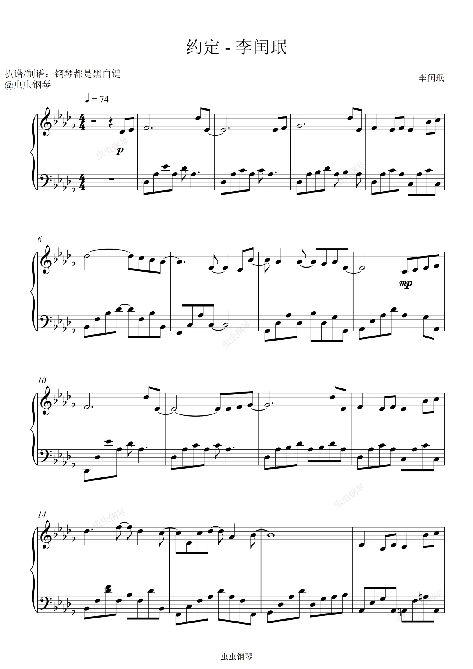 钢琴谱:约定 - 李闰珉 【宝藏级纯音乐/一秒沦陷】