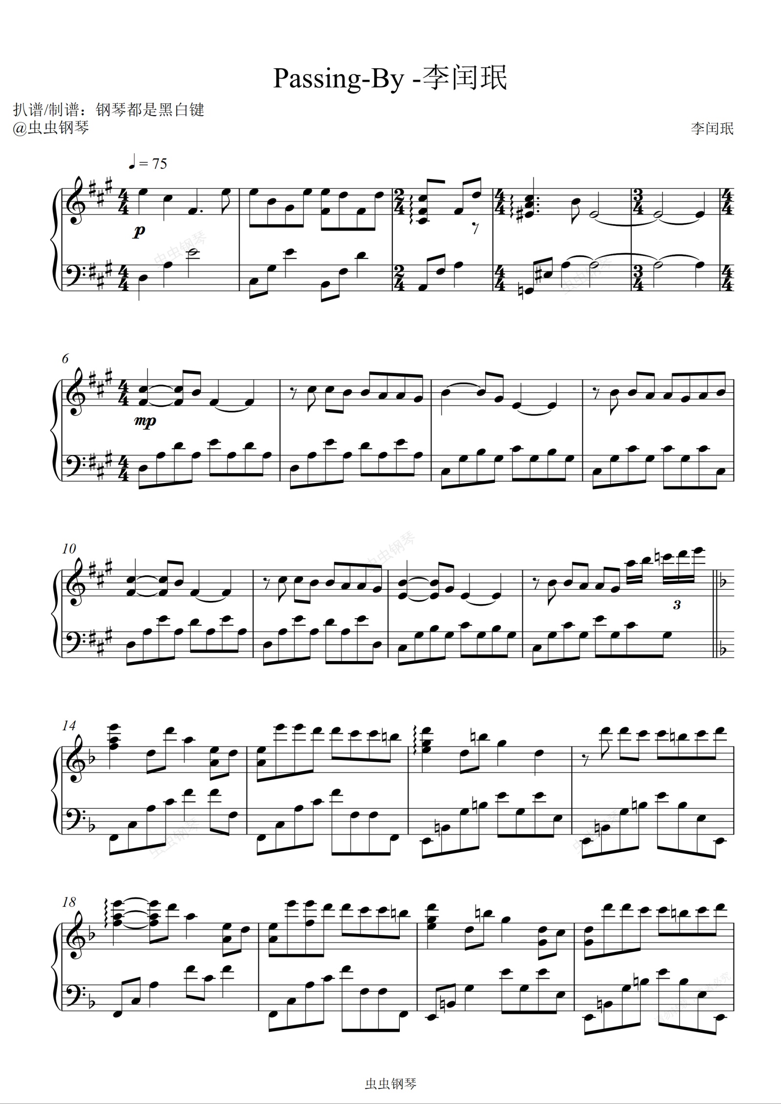 钢琴谱:Passing-By -李闰珉【宝藏级纯音乐】