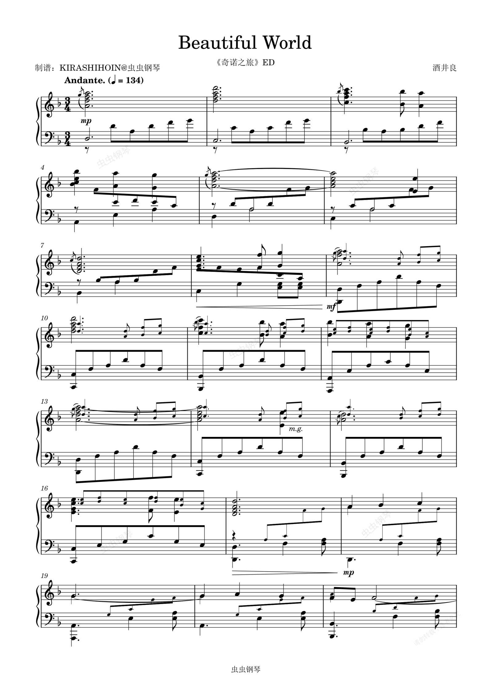 钢琴谱:Beautiful World(《奇诺之旅》ED/片尾曲)- 前田爱