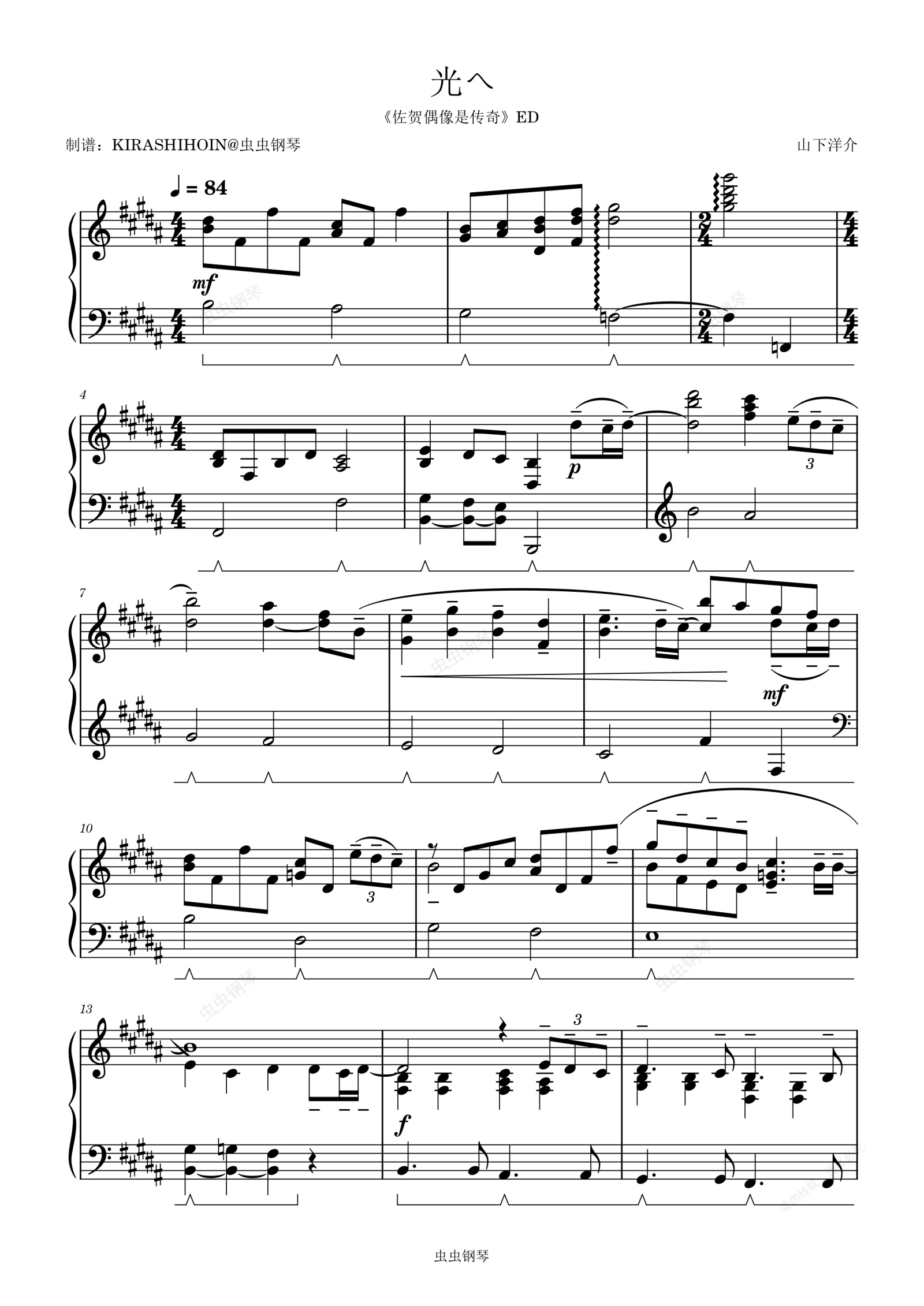 钢琴谱:光へ(《佐贺偶像是传奇》ED/片尾曲)- フランシュシュ