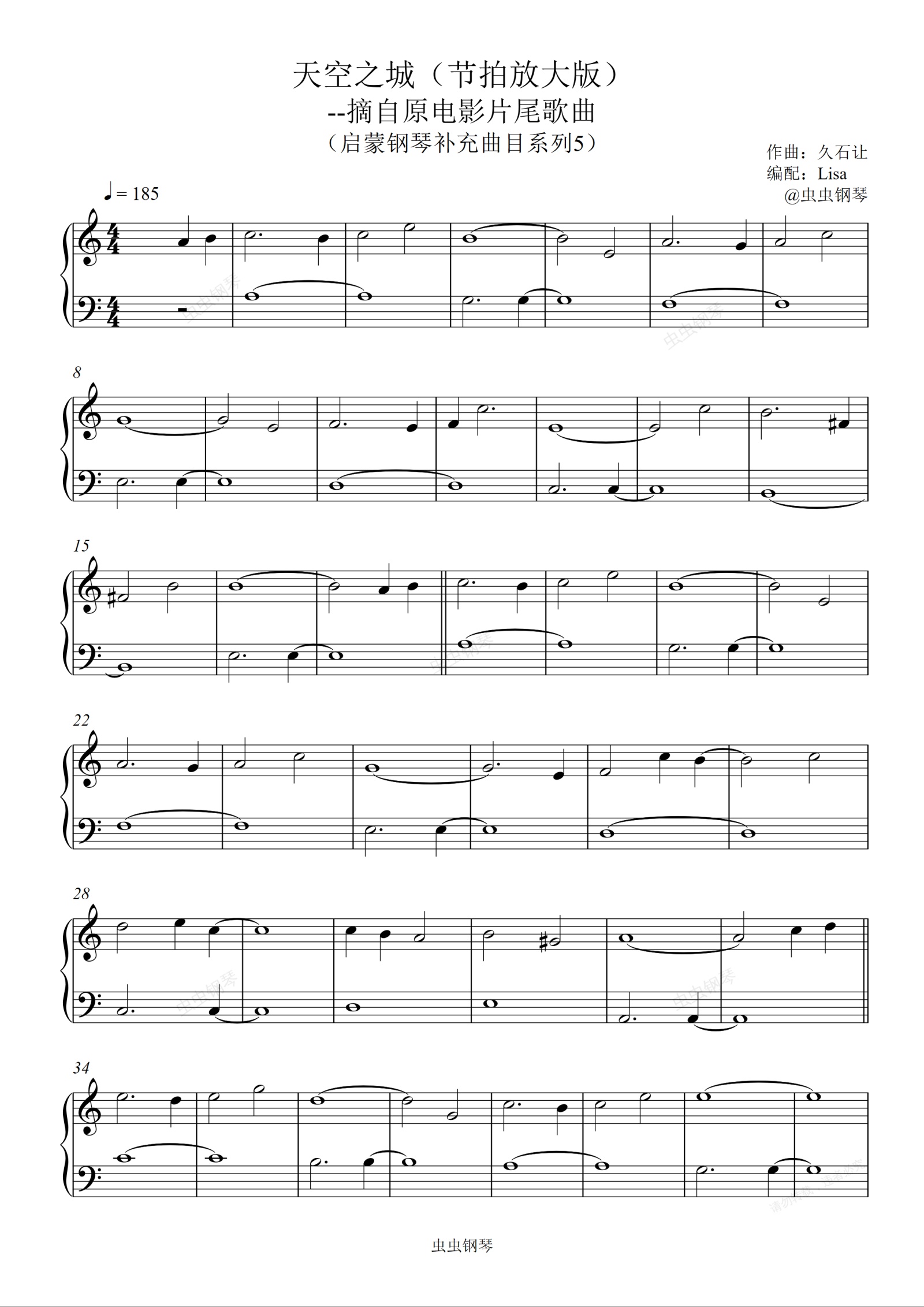 钢琴谱:天空之城(小汤3水平,启蒙钢琴补充曲目)