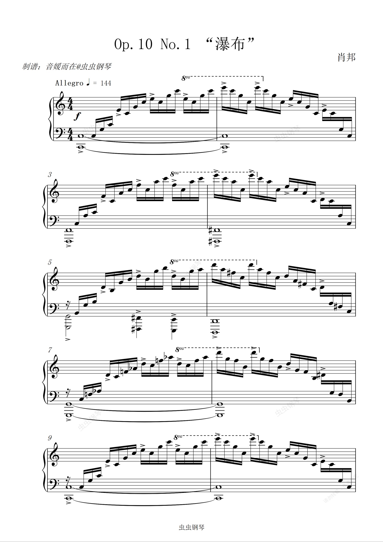 钢琴谱:肖邦C大调练习曲 Op.10 No.1 “瀑布”