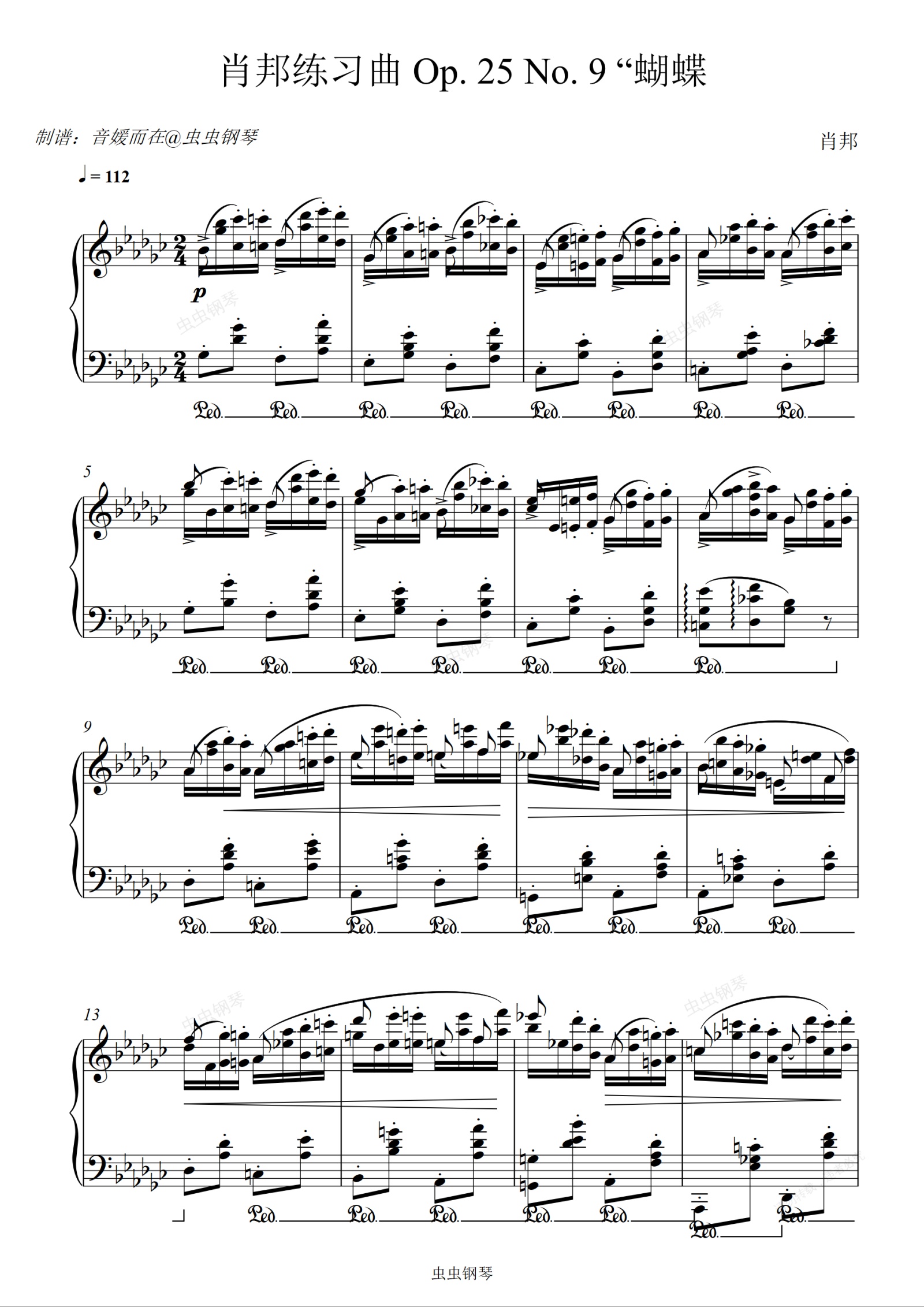 钢琴谱:肖邦练习曲 Op 25 No 9蝴蝶”