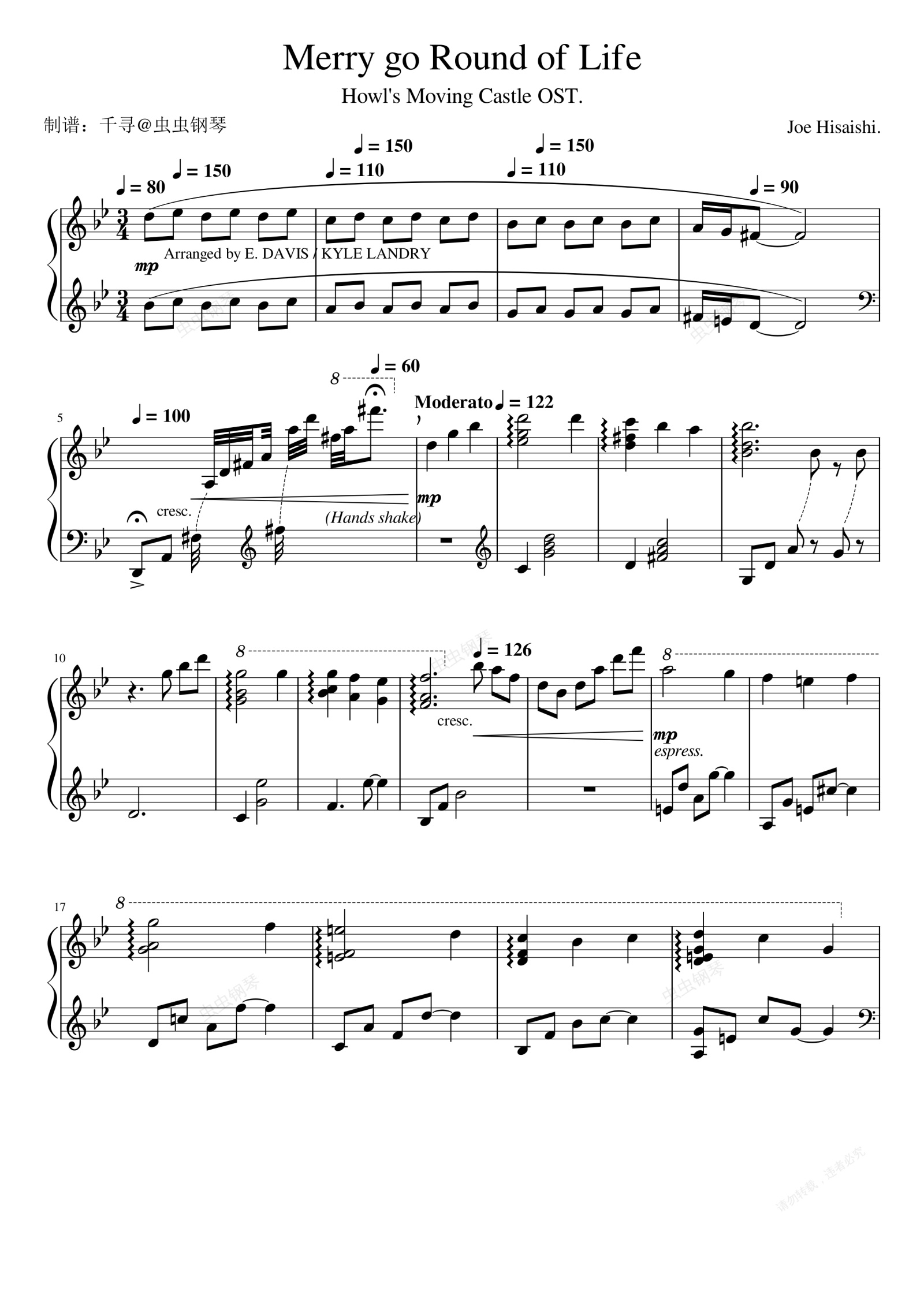 钢琴谱:人生象旋转木马-哈尔的移动城堡 - Merry go Round of Life
