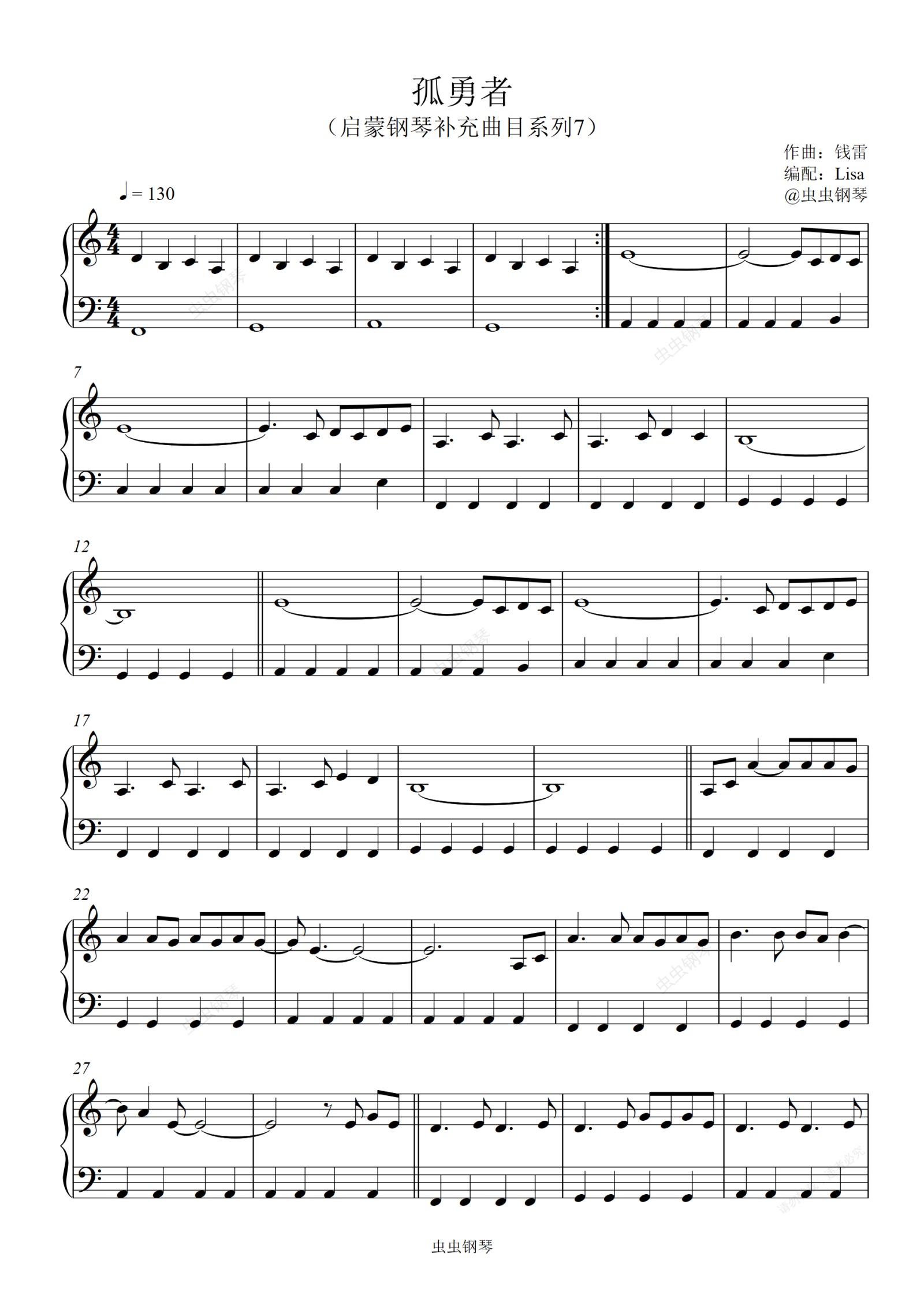 钢琴谱:孤勇者(小汤2水平,启蒙钢琴补充曲目)