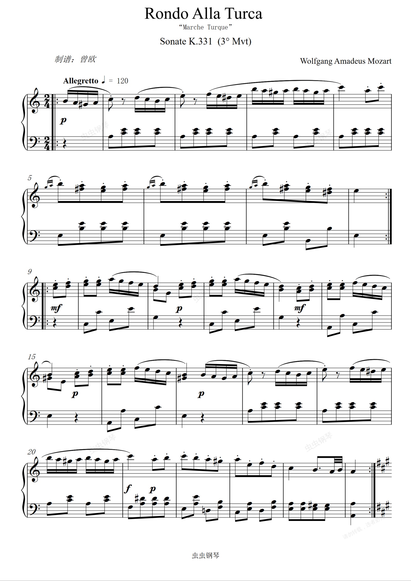 钢琴谱:莫扎特 - 土耳其进行曲 (完美原版) Rondo Alla Turca “Marche Turque”
