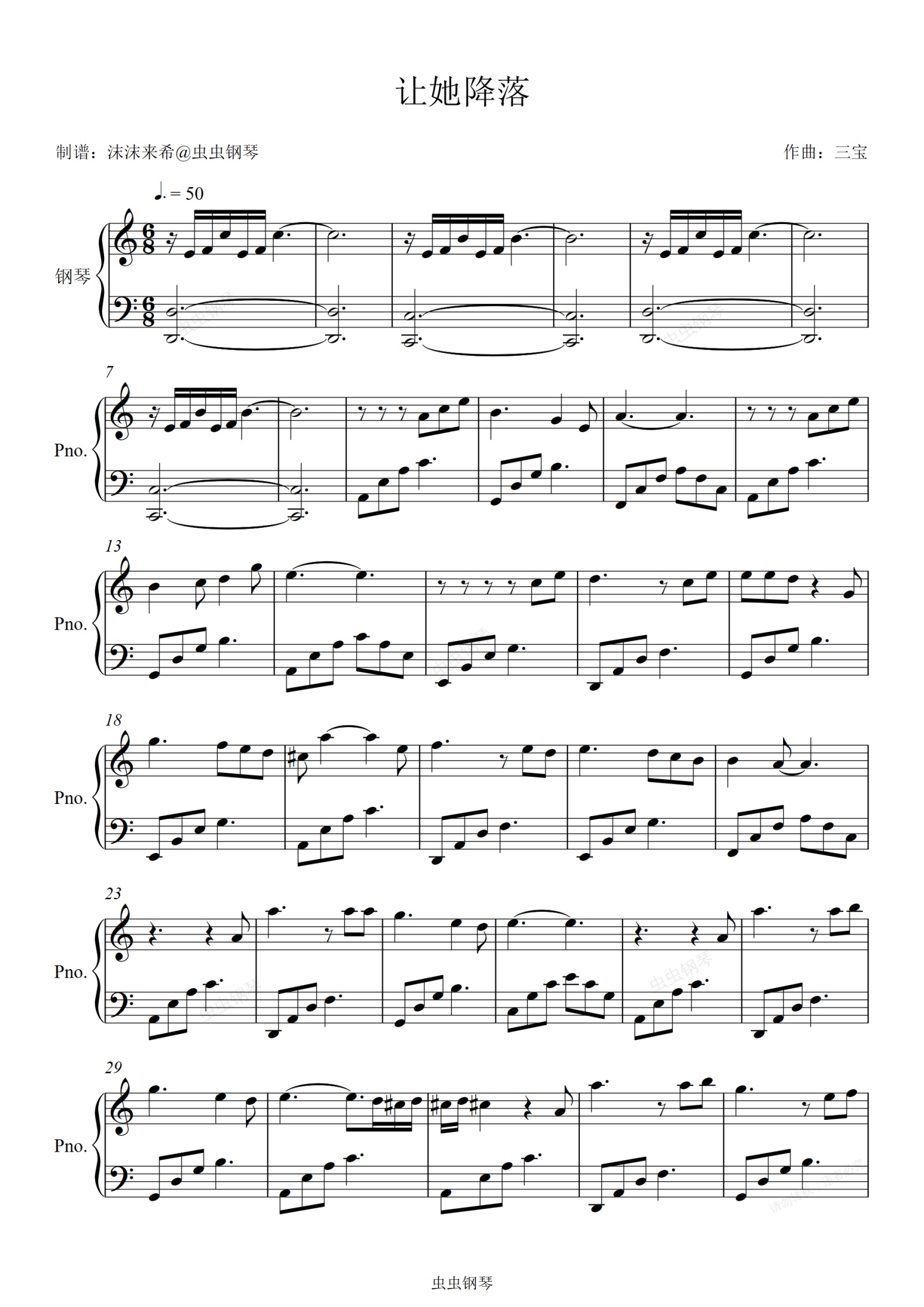 钢琴谱:《让她降落》金粉世家片尾曲 C调 初学者 好听易谈