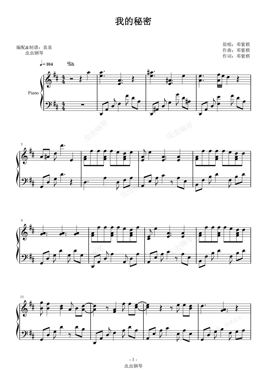 钢琴谱:我的秘密 邓紫棋 原调 完美演奏版