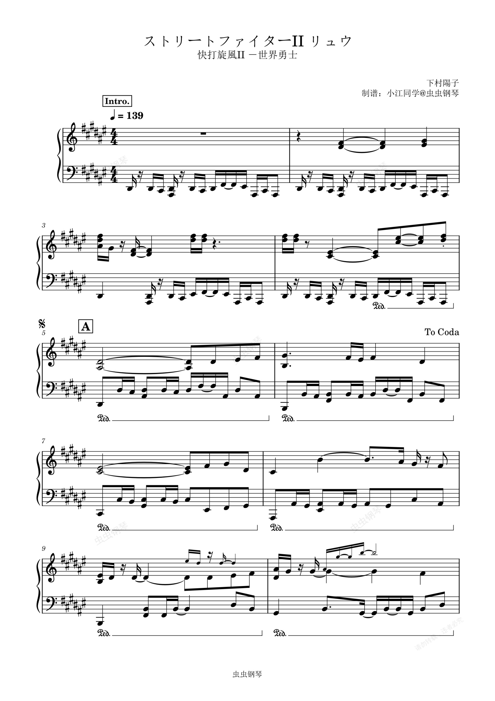 钢琴谱:ストリートファイターII リュウ 快打旋風II -世界勇士