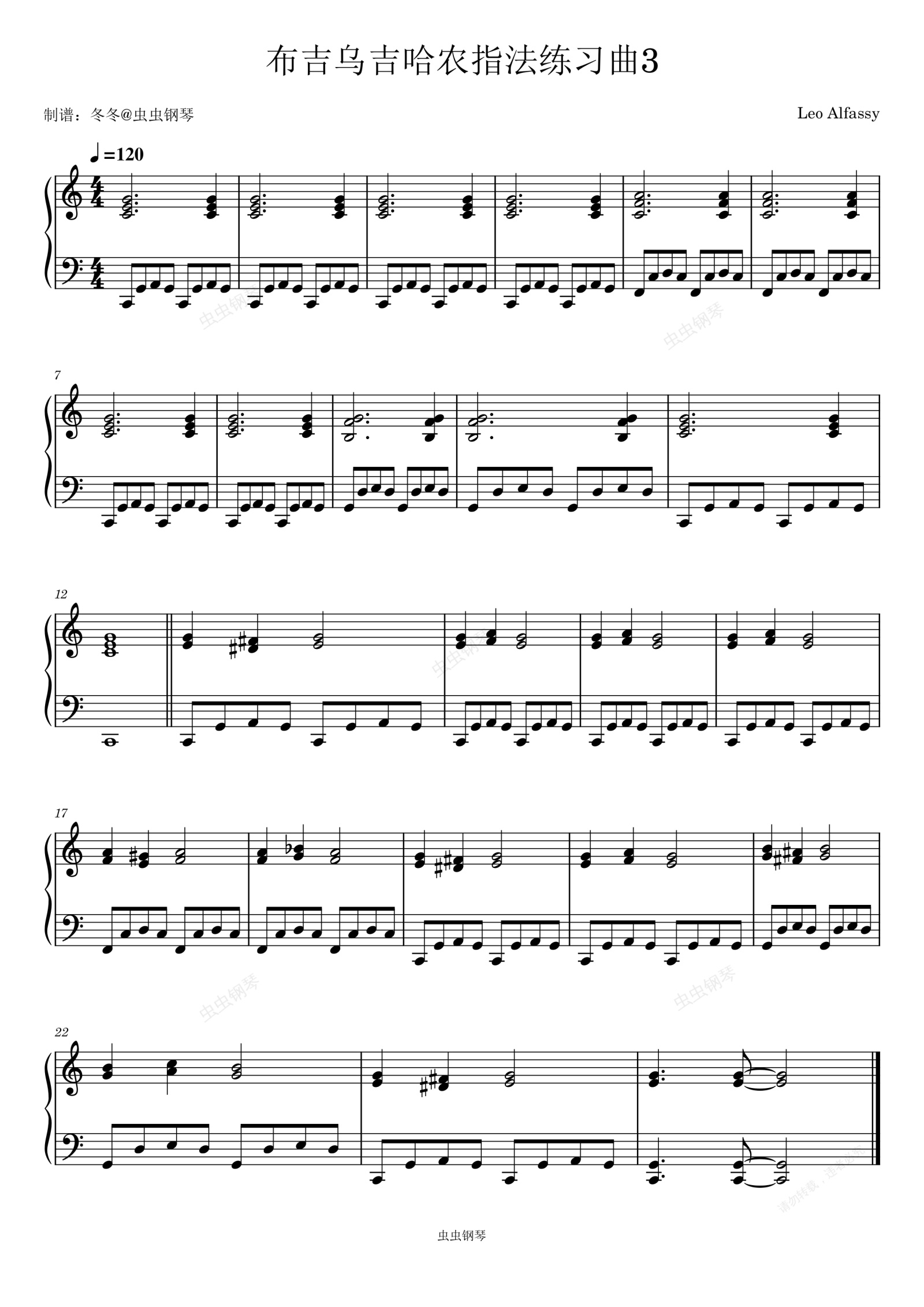 钢琴谱:布吉乌吉哈农指法练习曲3