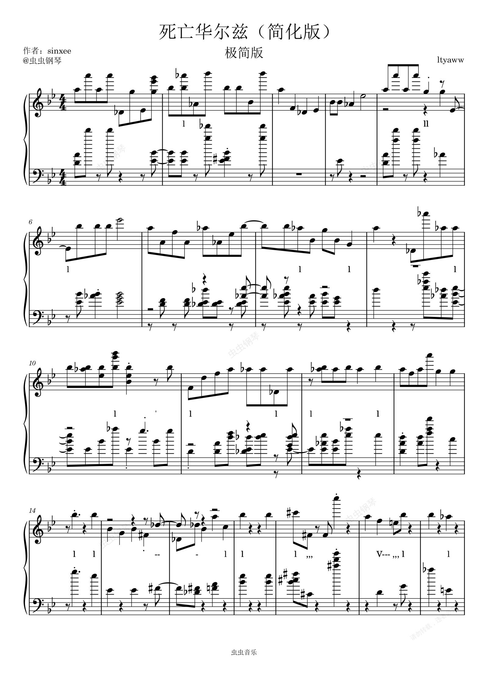 钢琴谱:死亡华尔兹(极简版)