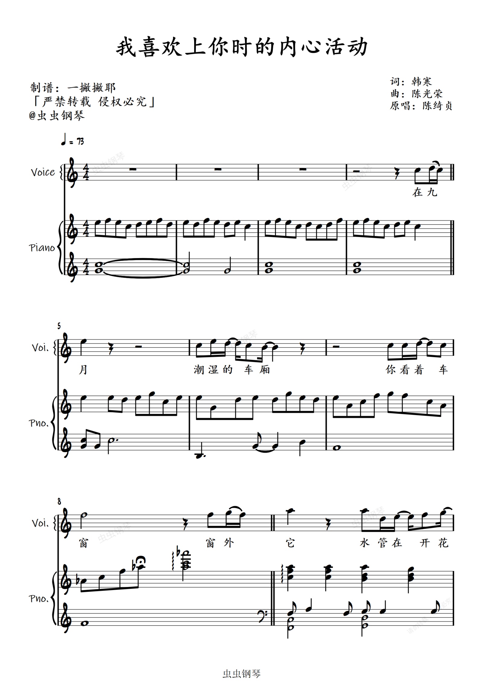 钢琴谱:极致还原完美弹唱《我喜欢上你时的内心活动》陈绮贞「一撇撇耶」