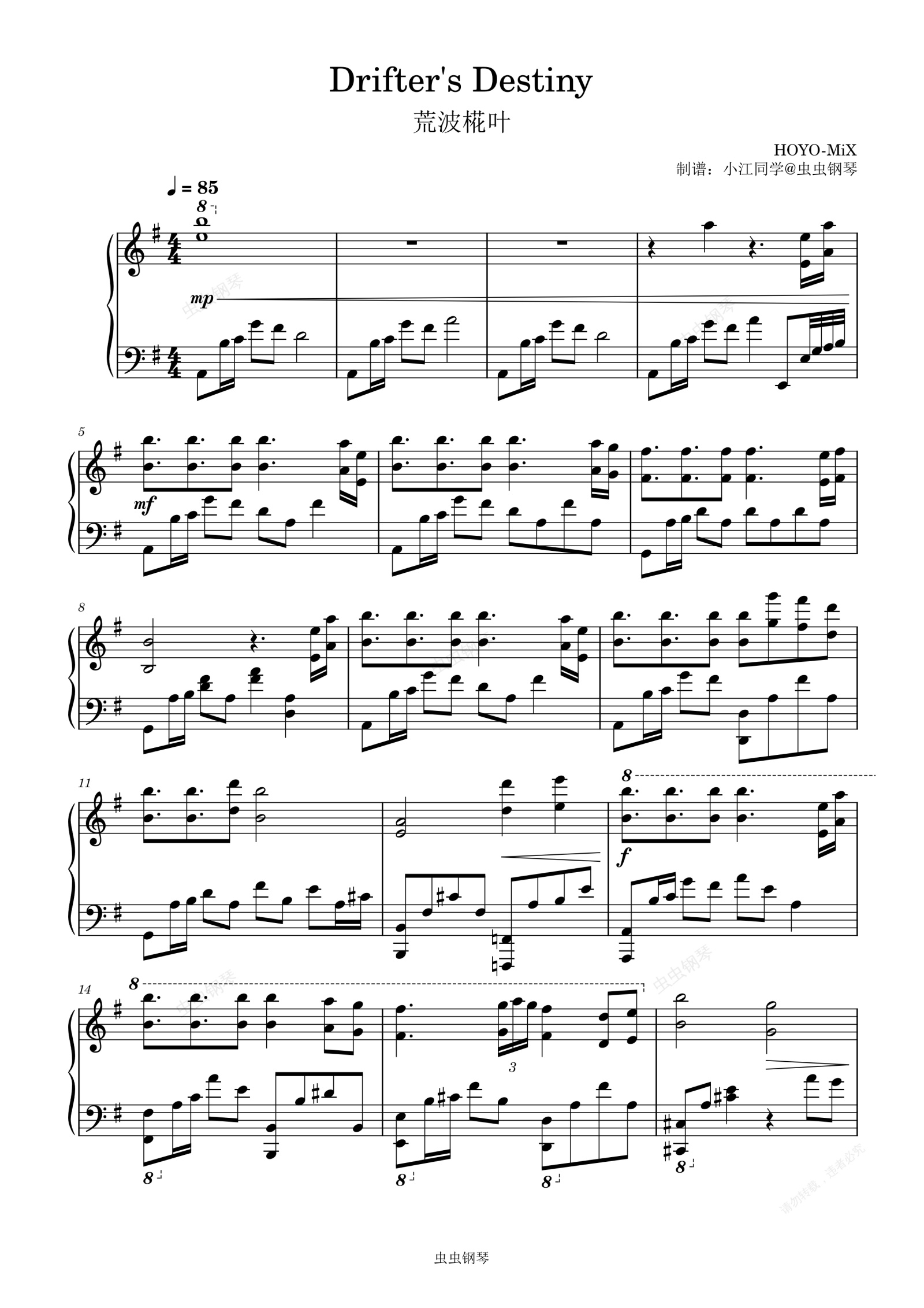 钢琴谱:荒波椛叶《原神》Drifter's Destiny