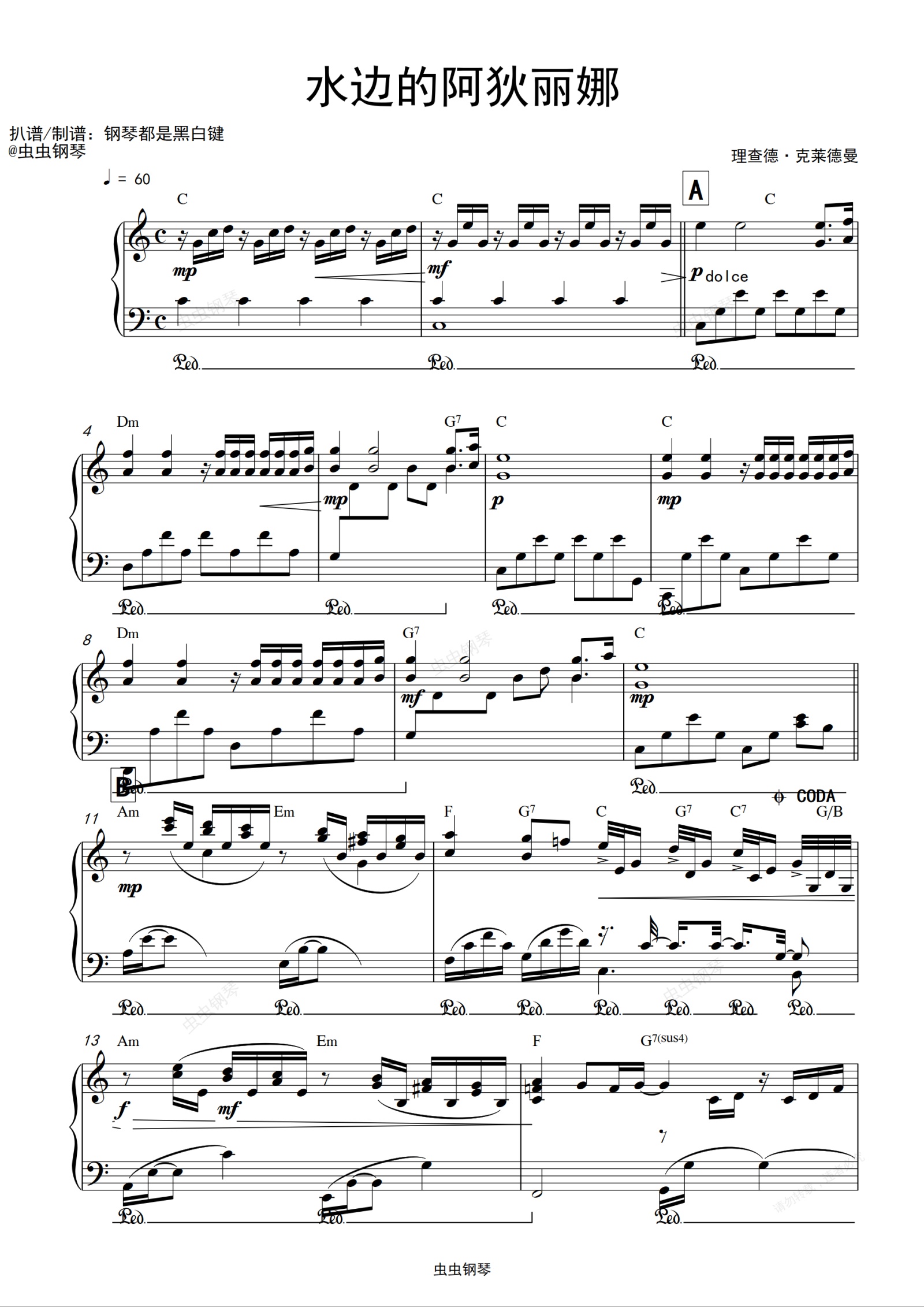 钢琴谱:水边的阿狄丽娜 -  理查德·克莱德曼【宝藏级纯音乐】