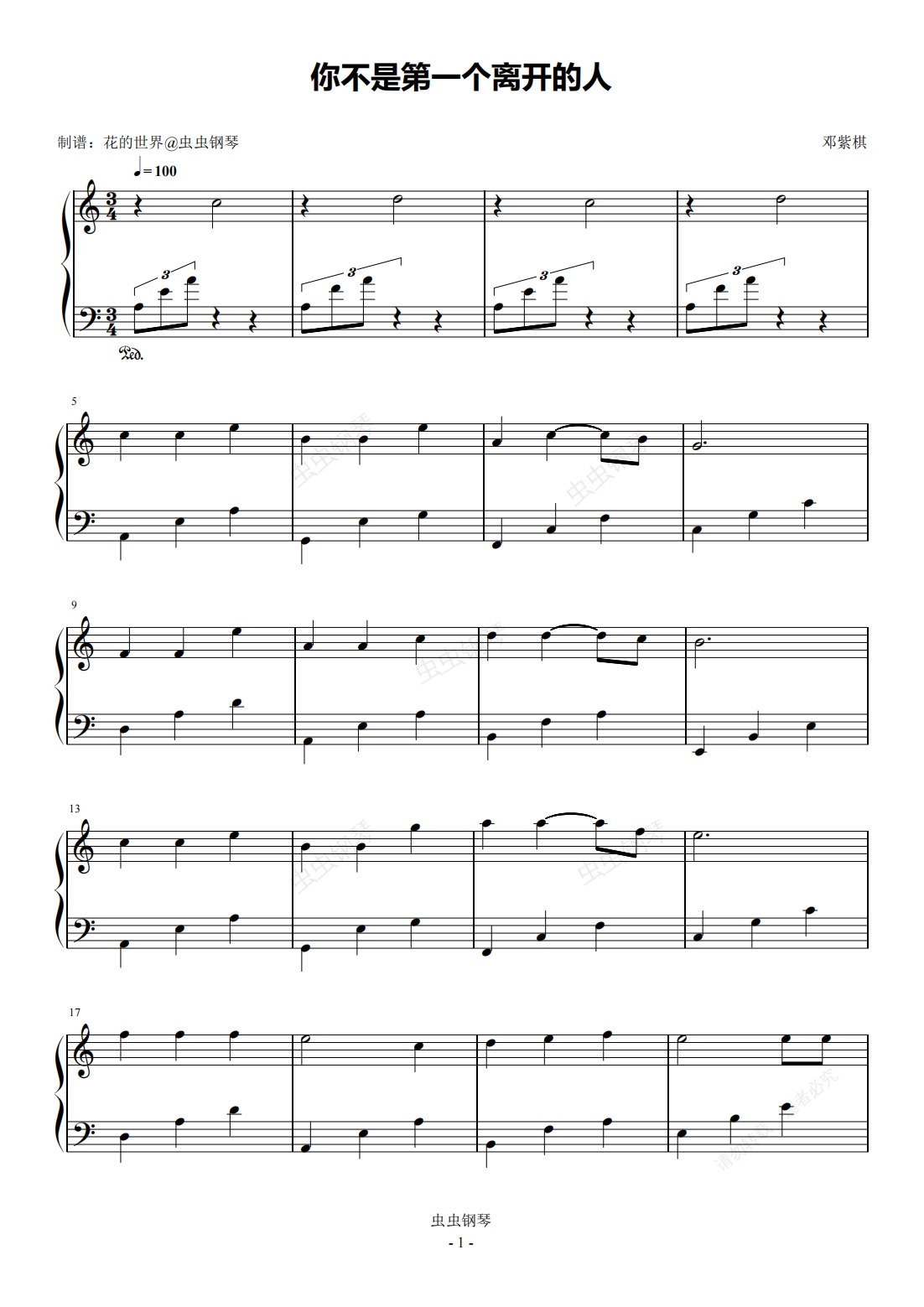 钢琴谱:你不是第一个离开的人 C调简易版 邓紫棋