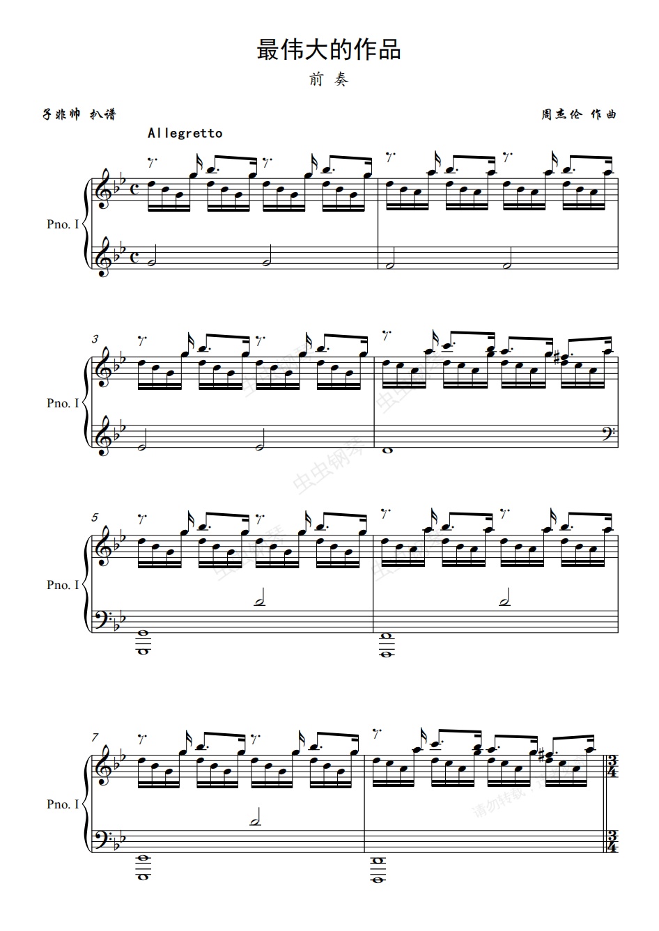 钢琴谱:最伟大的作品【前奏和间奏】