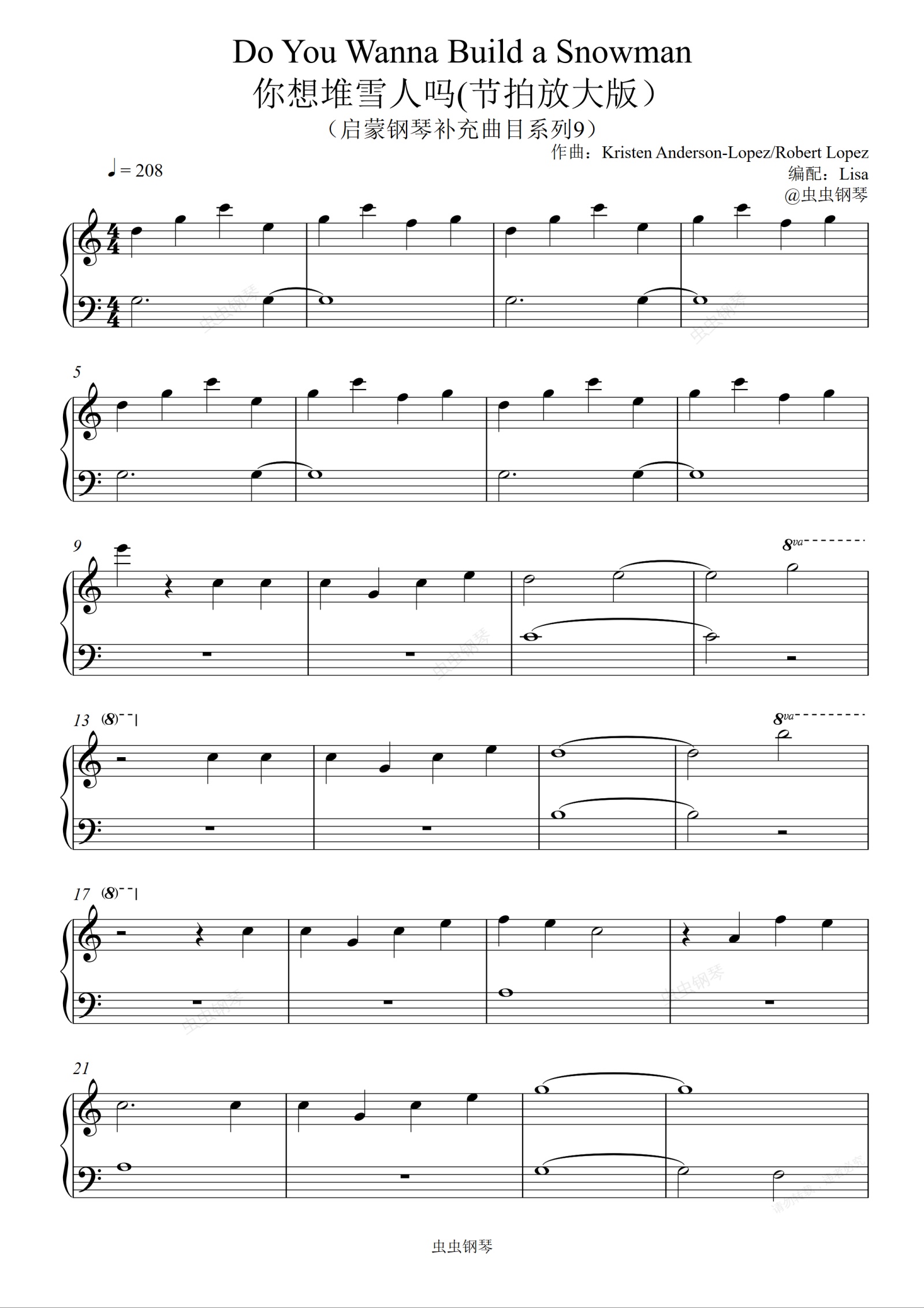Do You Wanna Build a Snowman(小汤2水平,启蒙钢琴补充曲目)