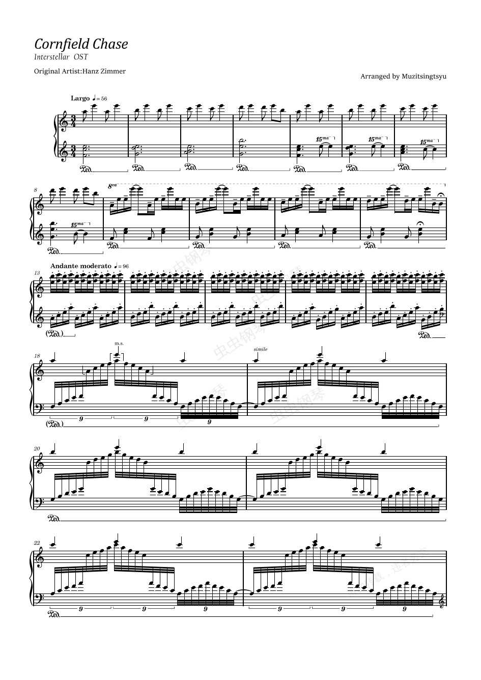 钢琴谱:星际穿越主题曲Cornfield Chase钢琴改编