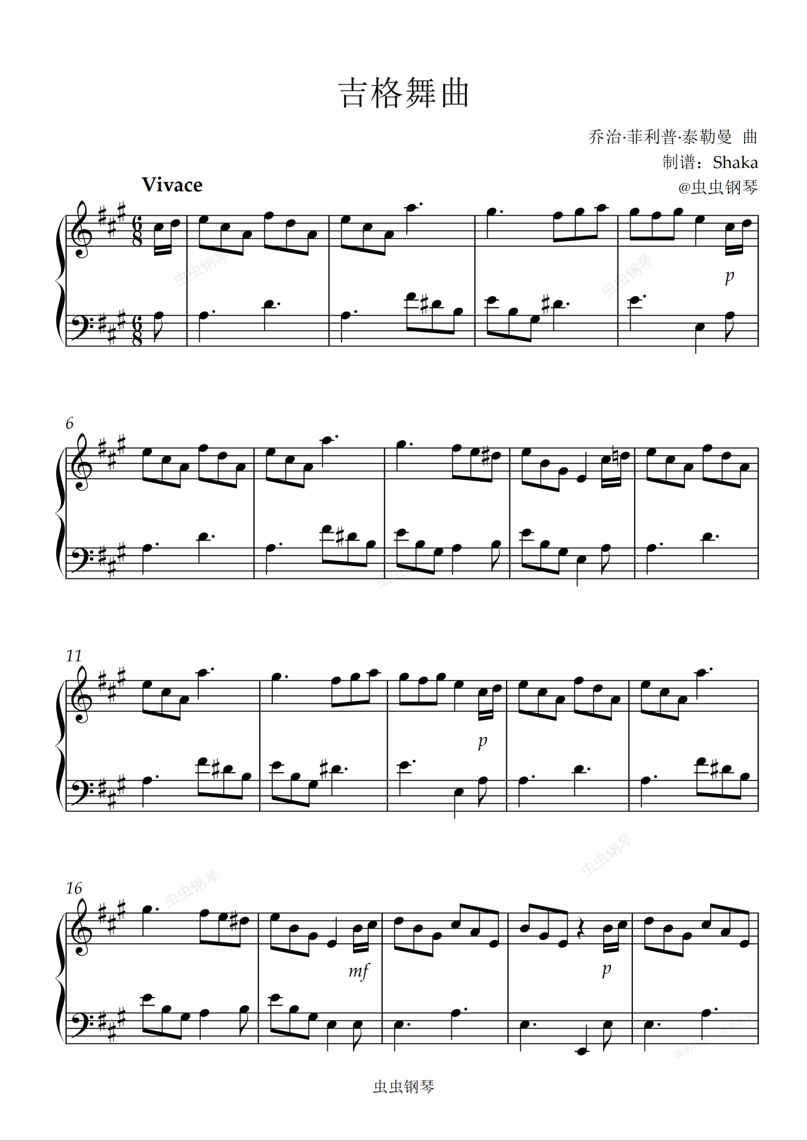 钢琴谱:吉格舞曲 A大调轻快版 上海音乐学院2020版2级考级曲目