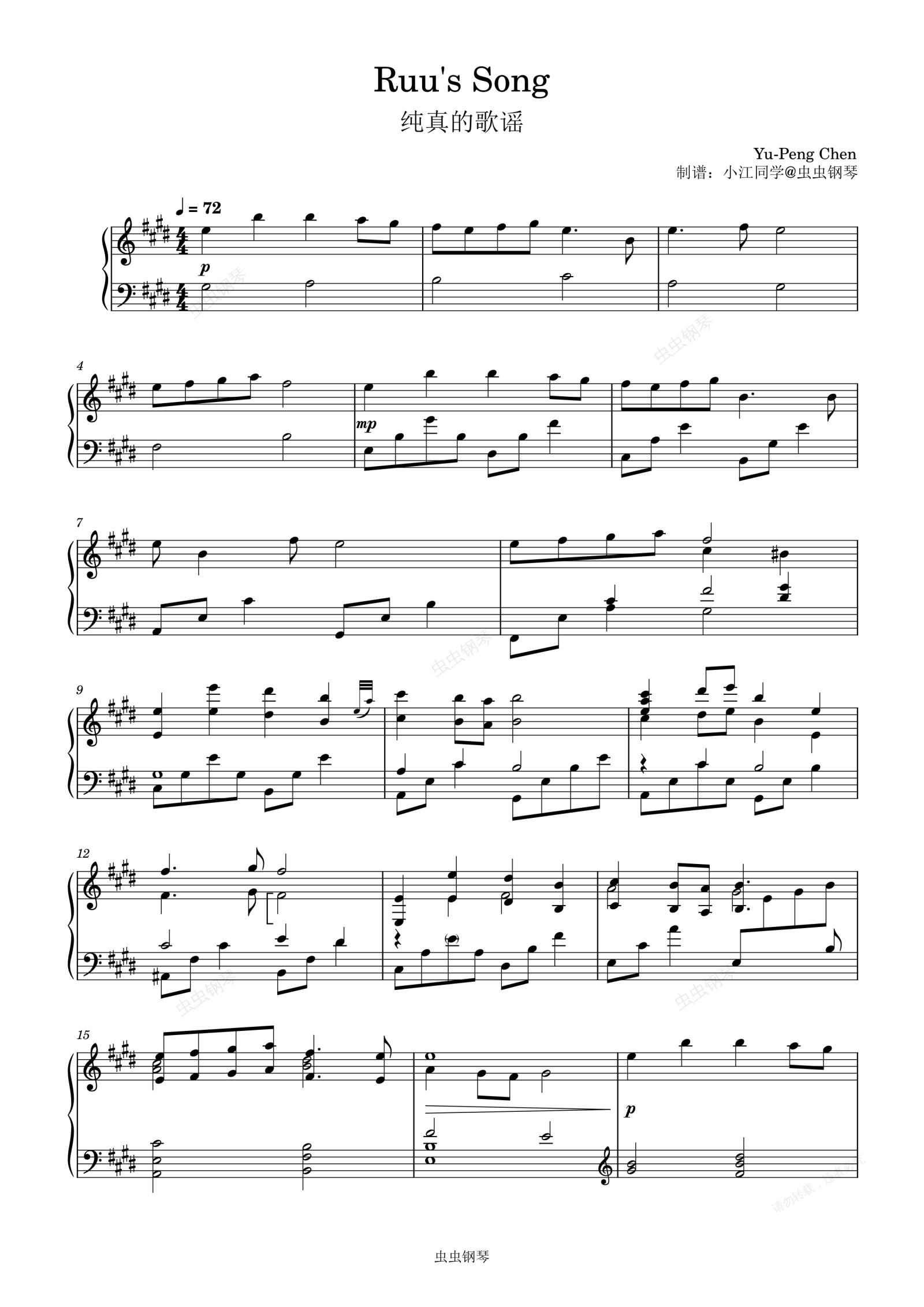 钢琴谱:Ruu's Song 纯真的歌谣《原神》