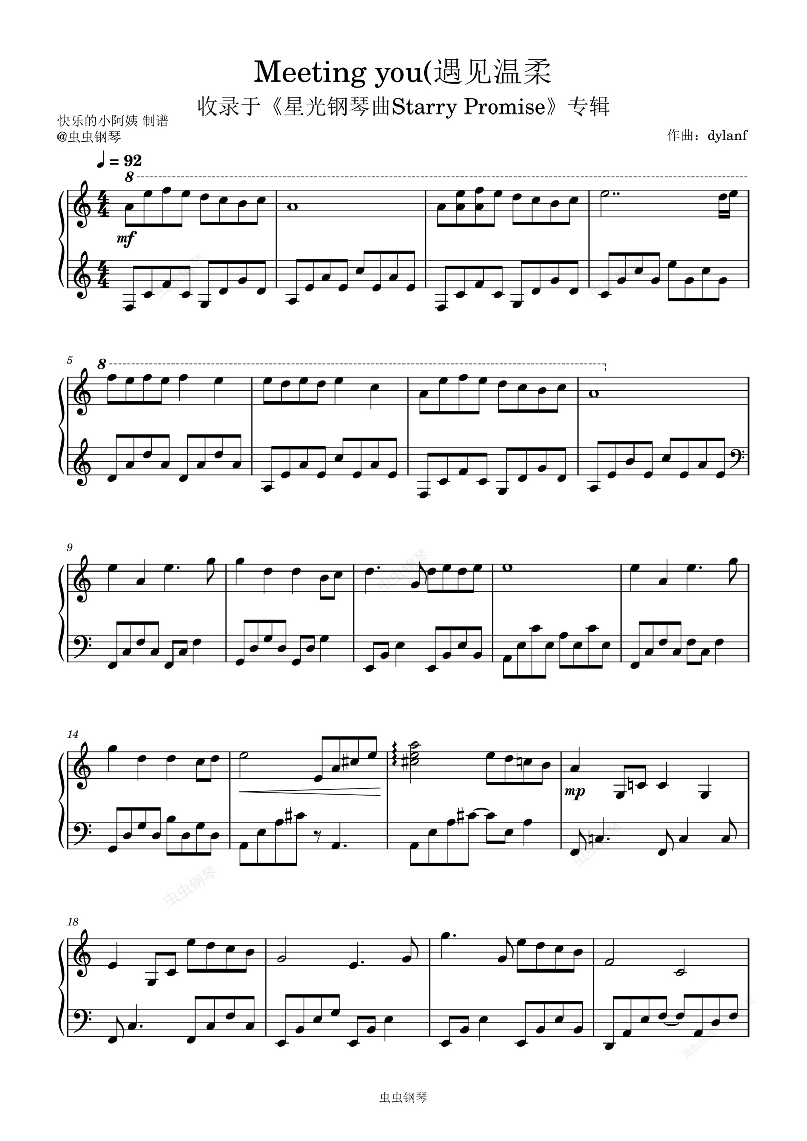 钢琴谱:Meeting You (遇见温柔) - dylanf