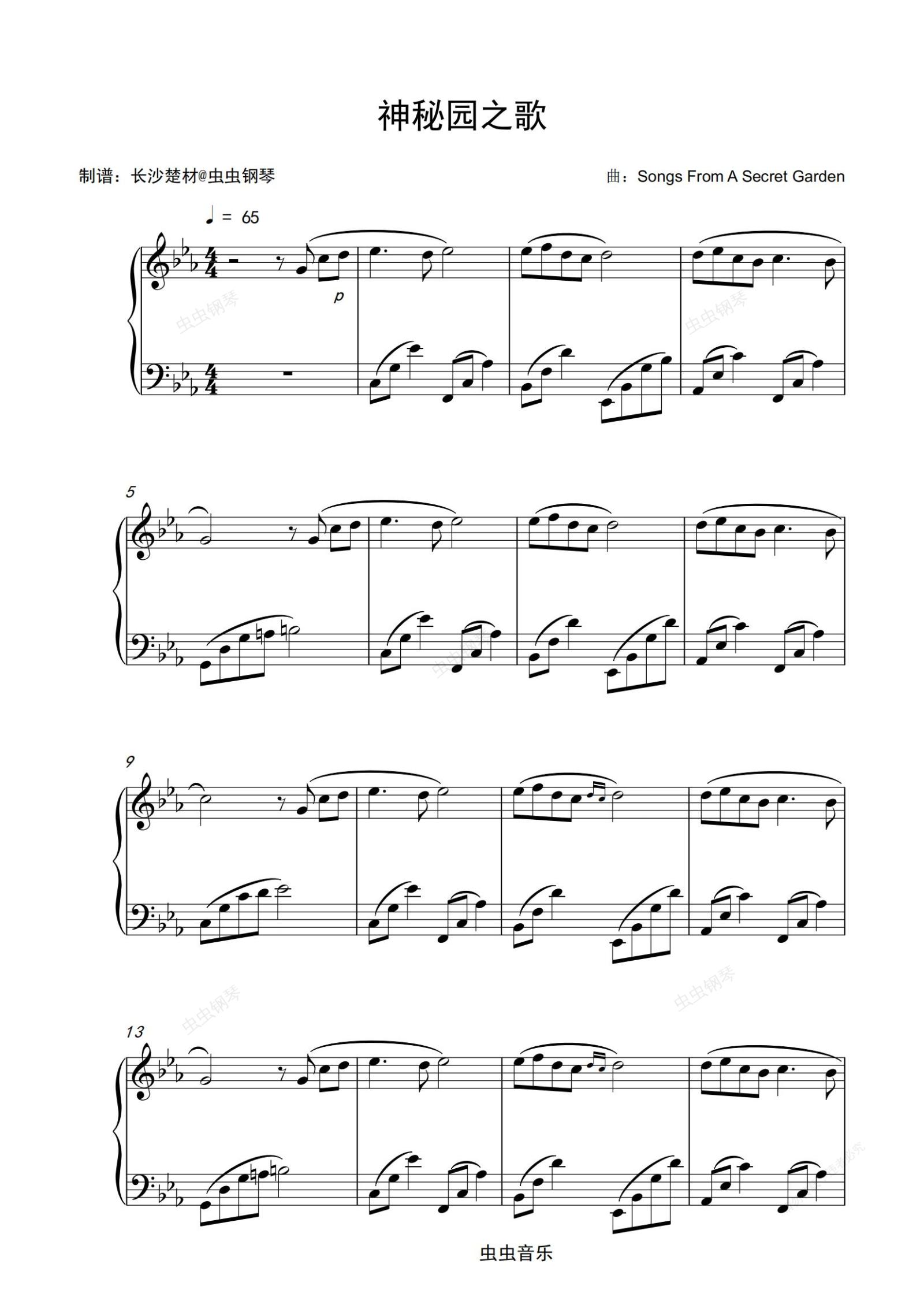 钢琴谱:神秘园之歌