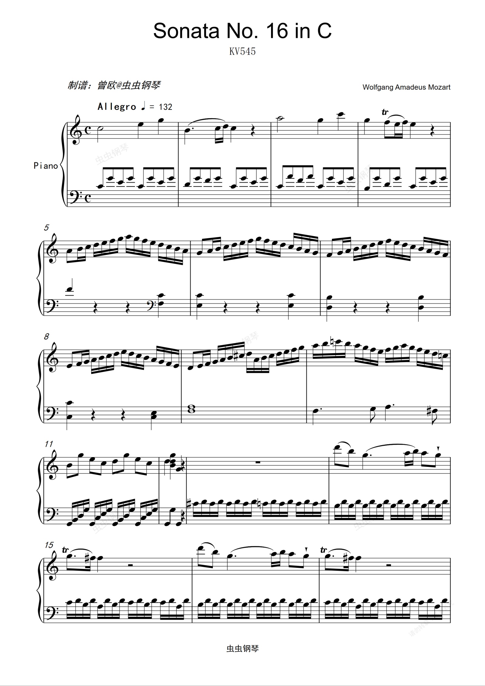 莫扎特 - 第16号钢琴奏鸣曲C大调 Piano Sonata No.16 Allegro K.545