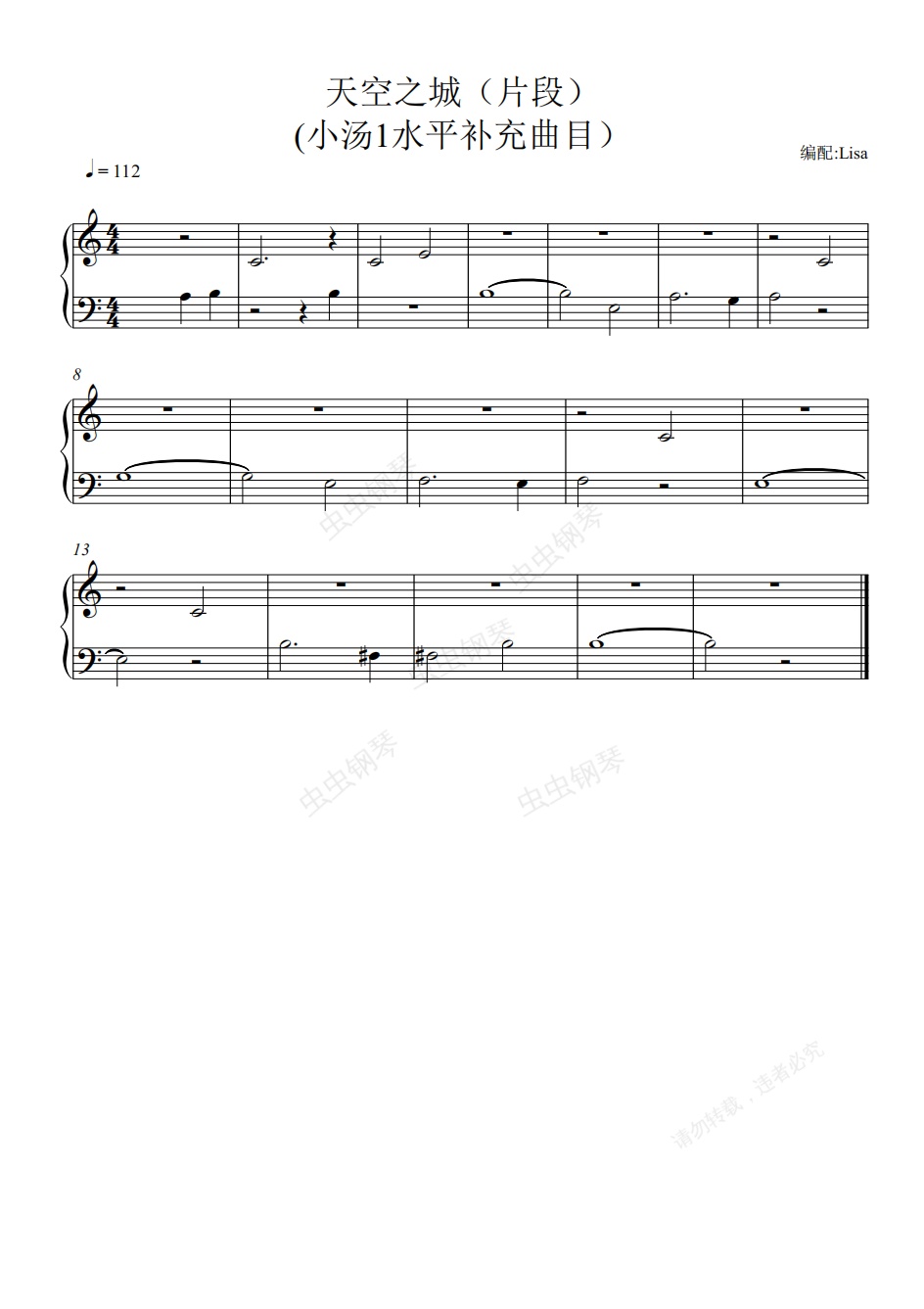 钢琴谱:天空之城片段(小汤1水平补充曲目)