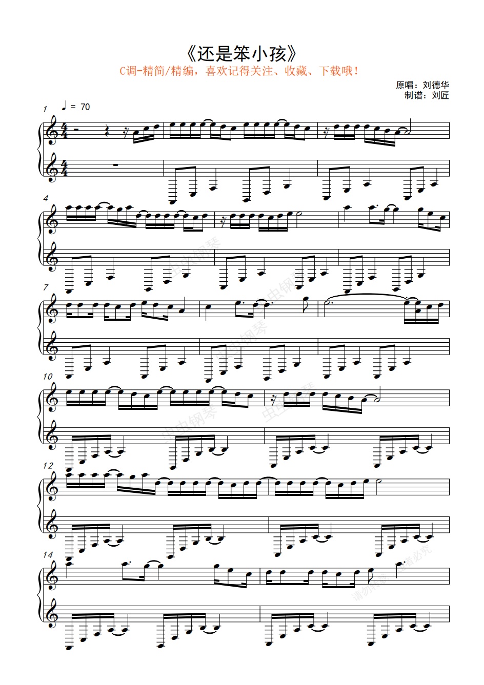 钢琴谱:【免费谱】《笨小孩》,AI智能歌谱,请搜索刘匠+歌名