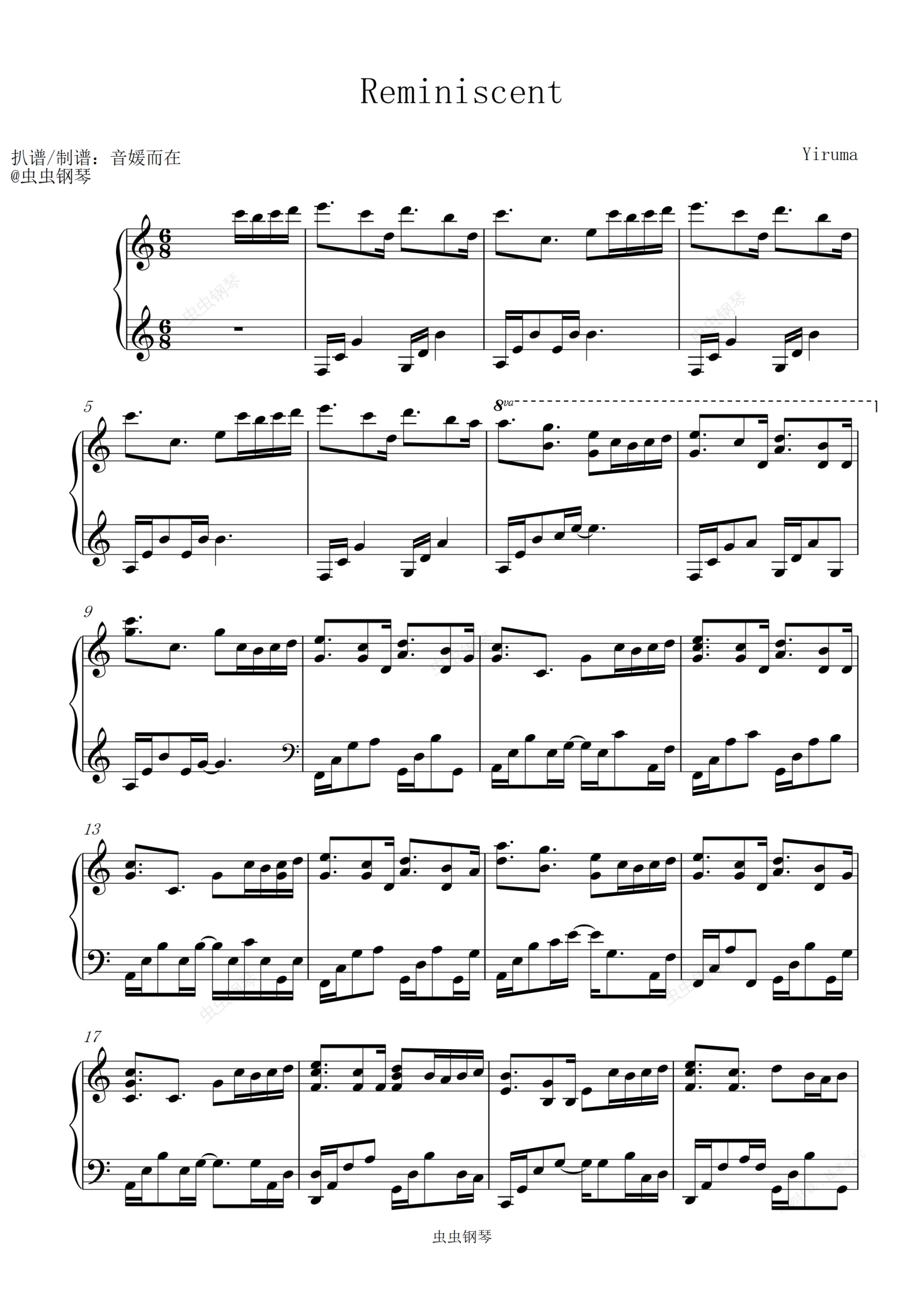 钢琴谱:李闰珉 - Reminiscent 美丽静心的音乐/轻松的学习