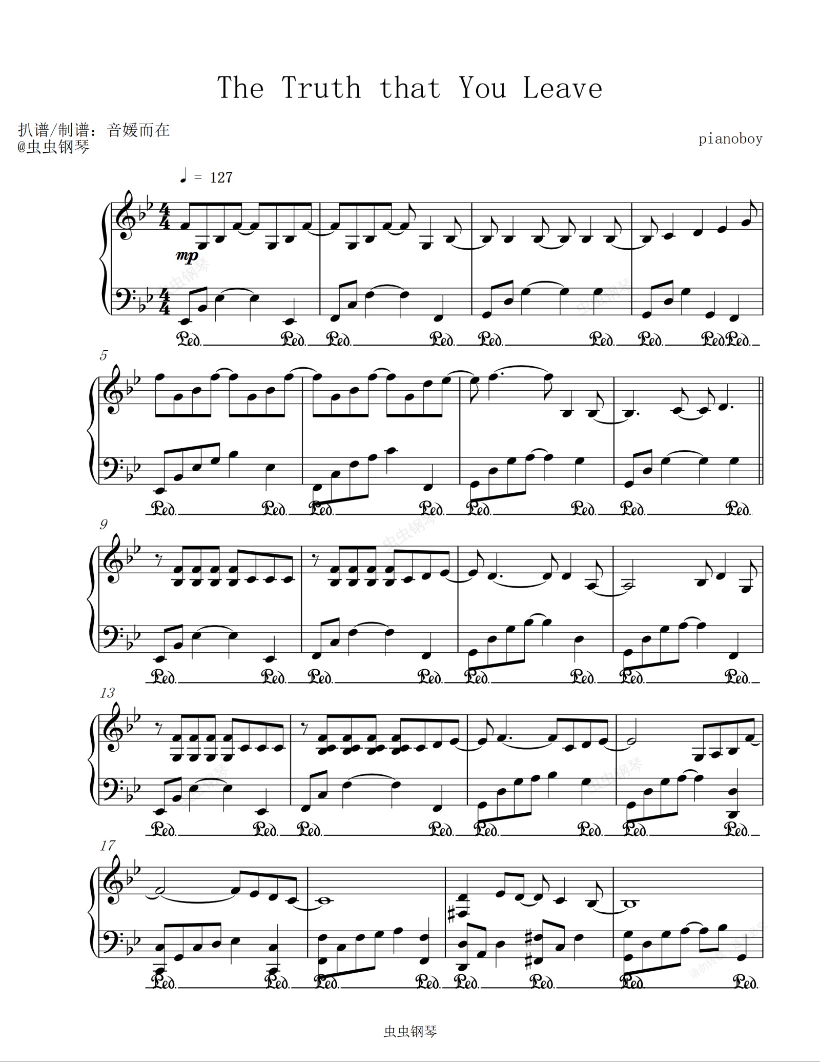 钢琴谱:The Truth That You Leave - 你离开的事实 【美丽静心的音乐/轻松的学习】