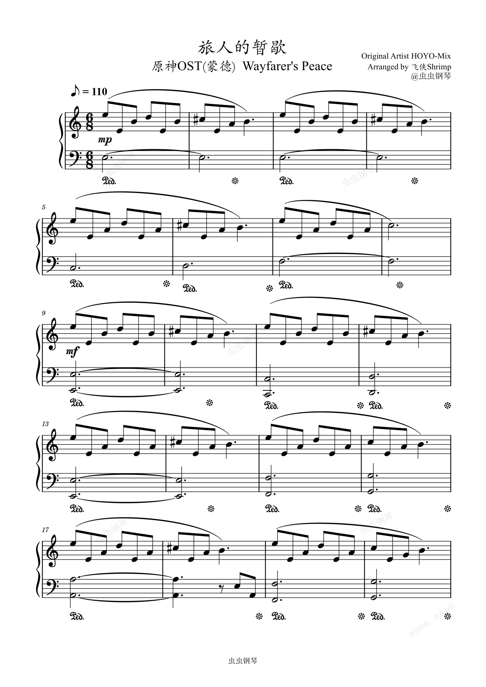 钢琴谱:【原神OST】旅人的暂歇|Wayfarer's Peace(蒙德)