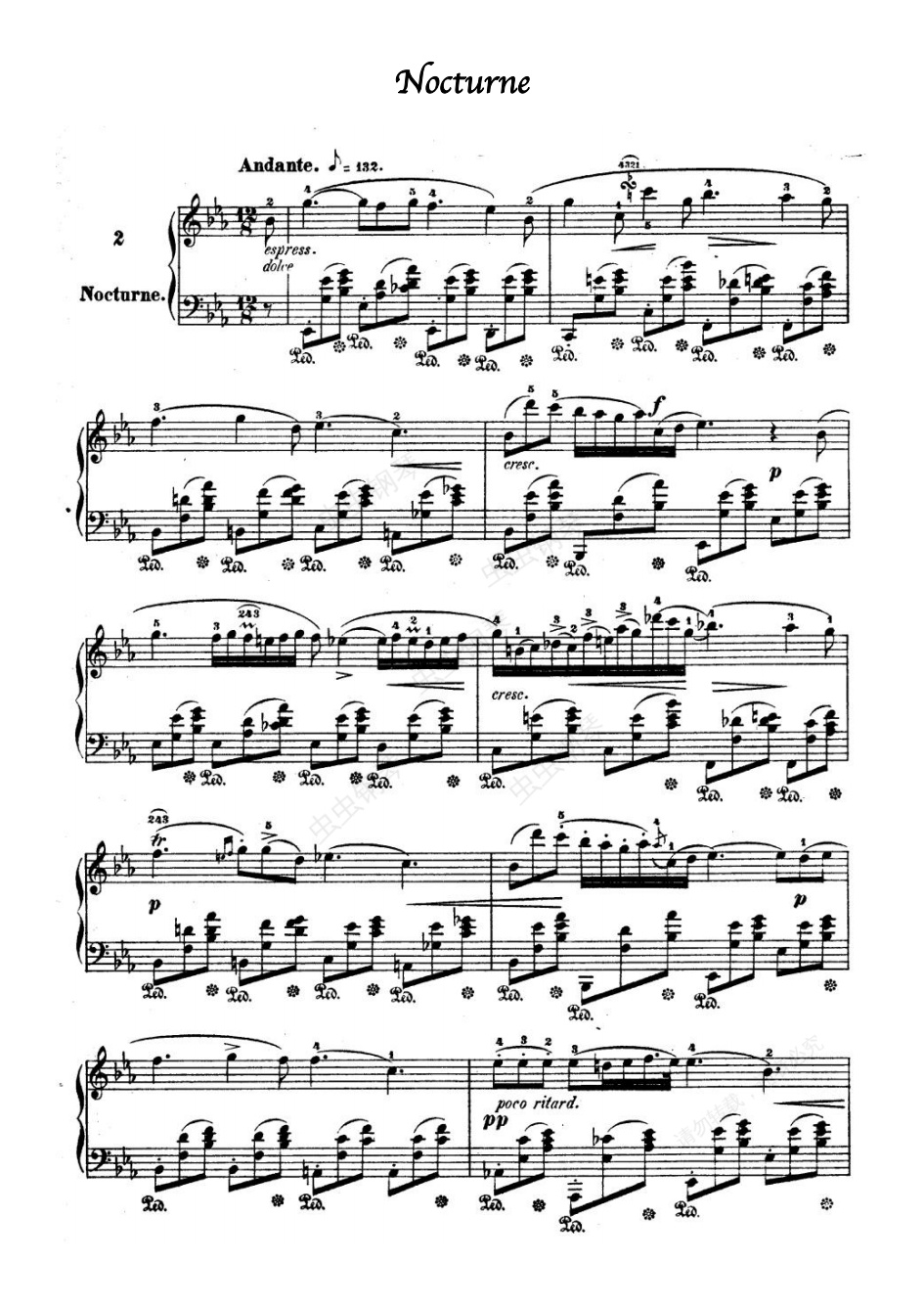 钢琴谱:降E大调夜曲 Nocturne in E-flat Major