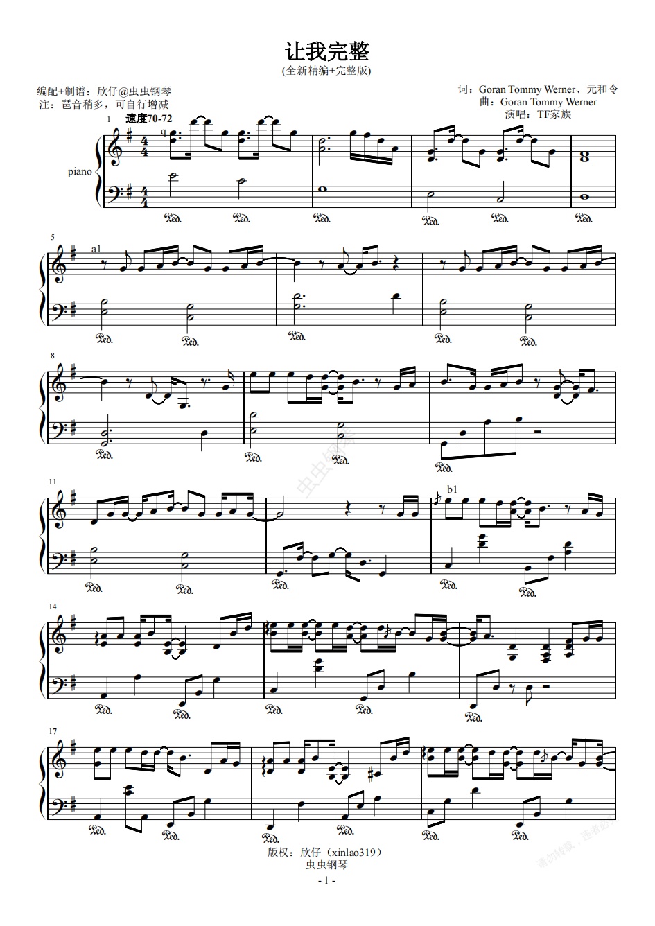 钢琴谱:TF家族-G《让我完整》(全新精编+完整版)
