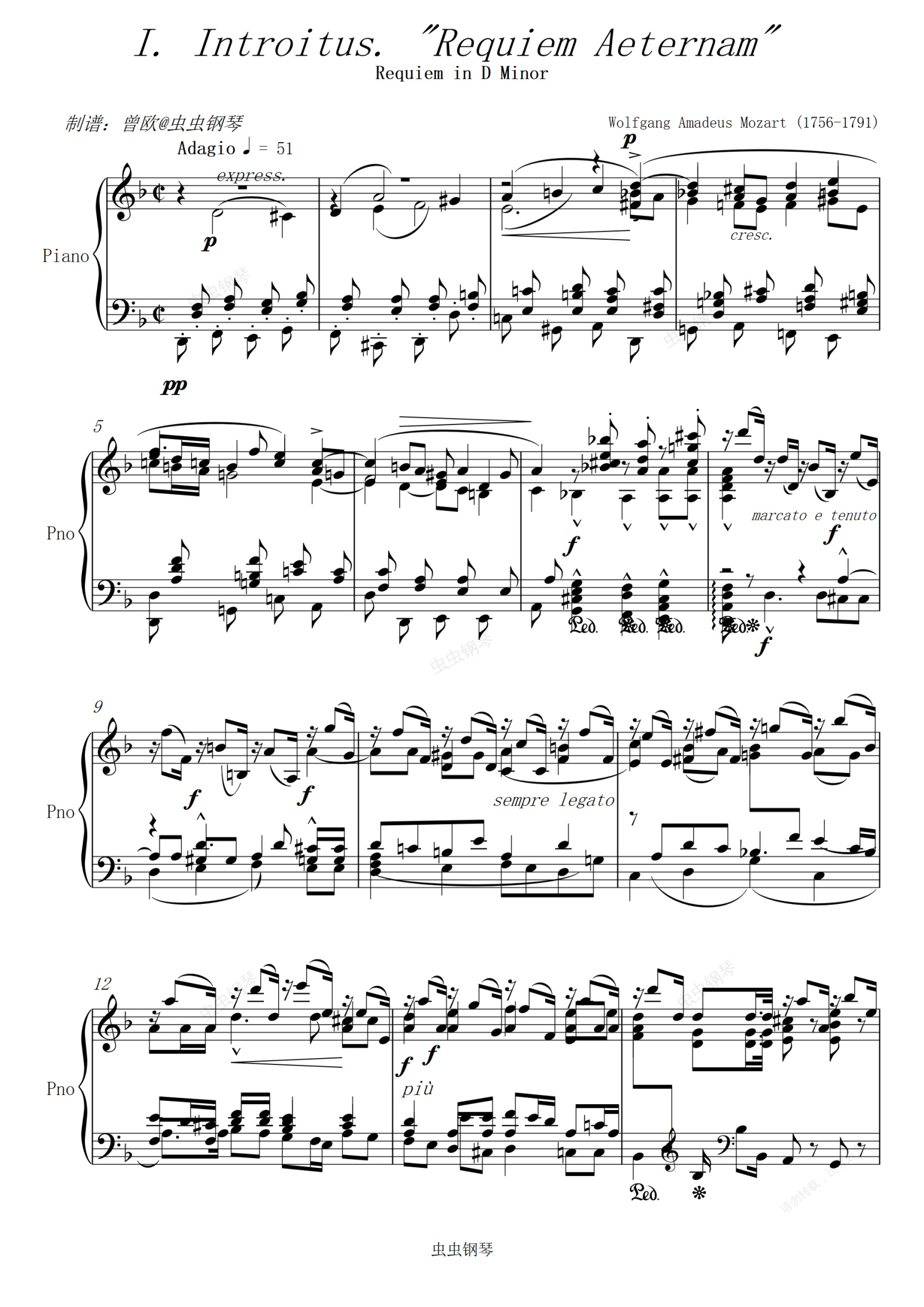 钢琴谱:莫扎特 - 安魂曲之Introitus K.626