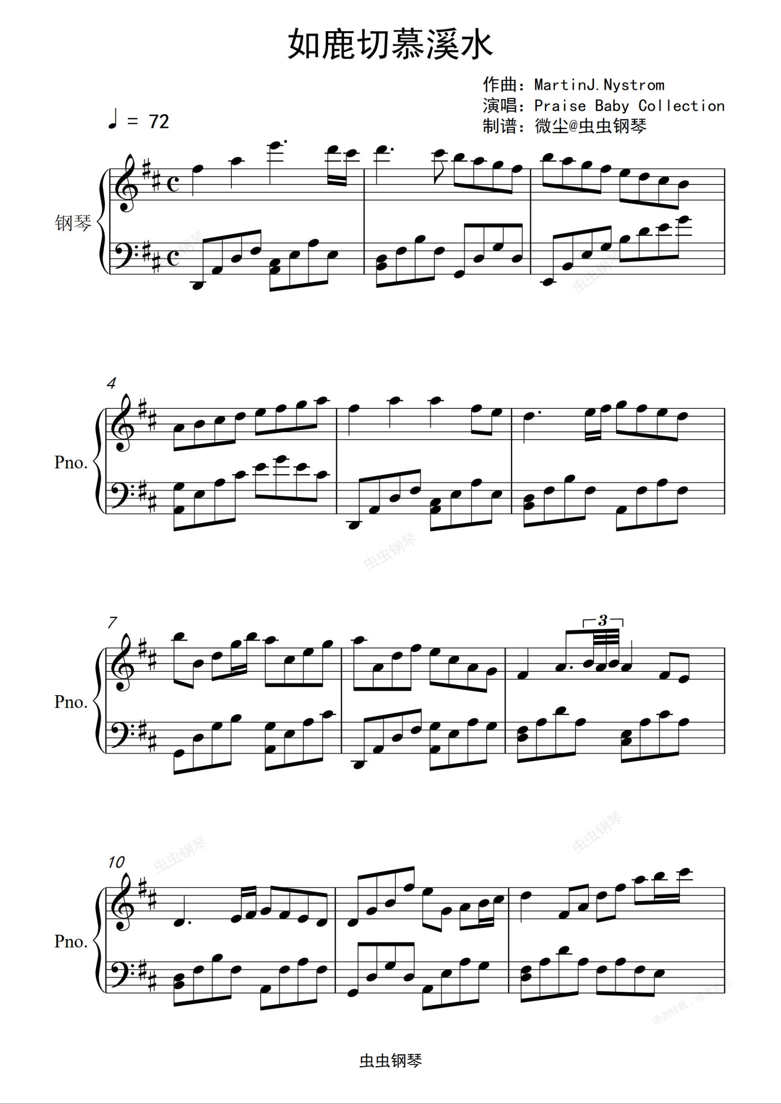 钢琴谱:如鹿切慕溪水-(独奏版)