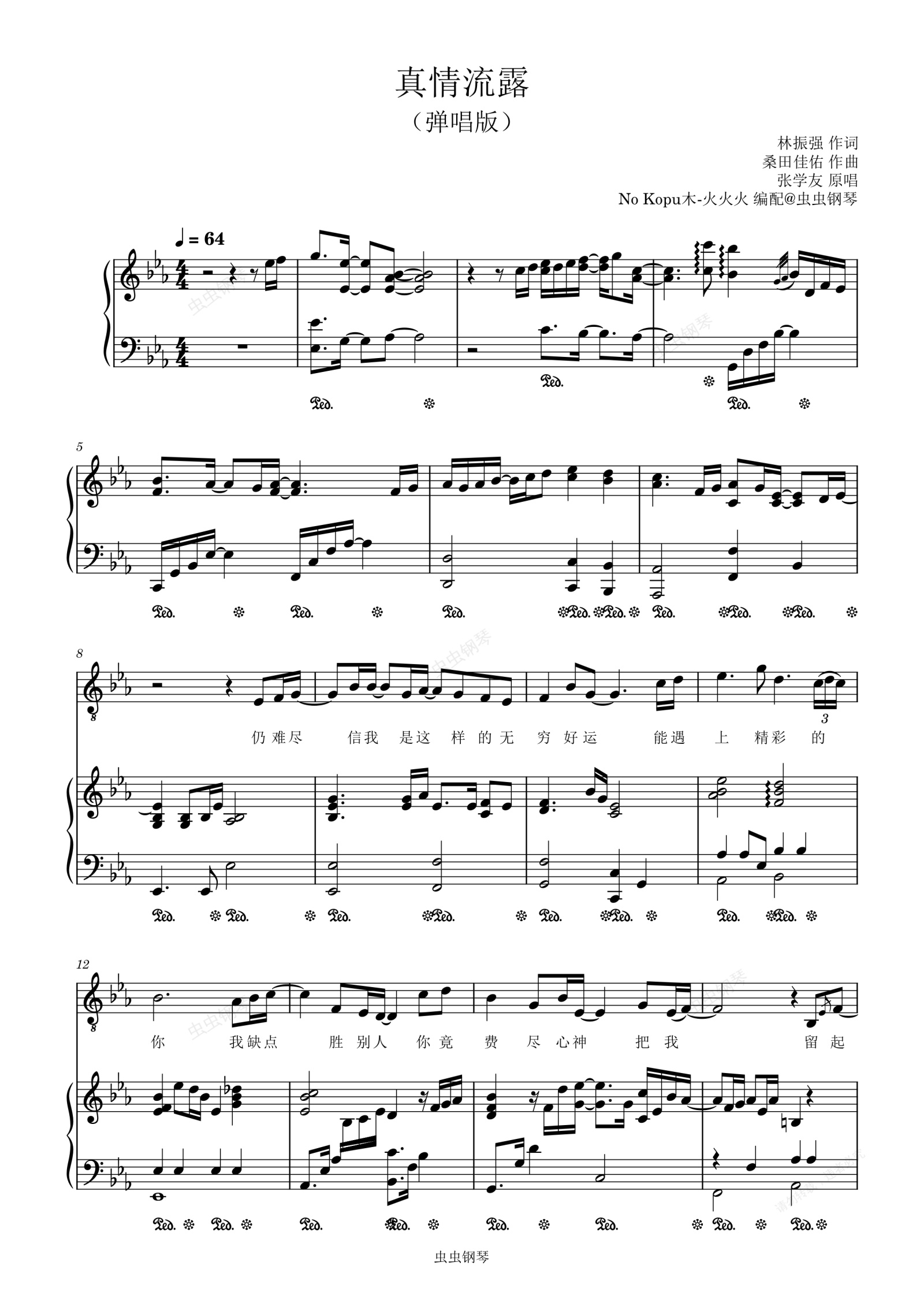 钢琴谱:精编《真情流露》(弹唱版)bE调-张学友