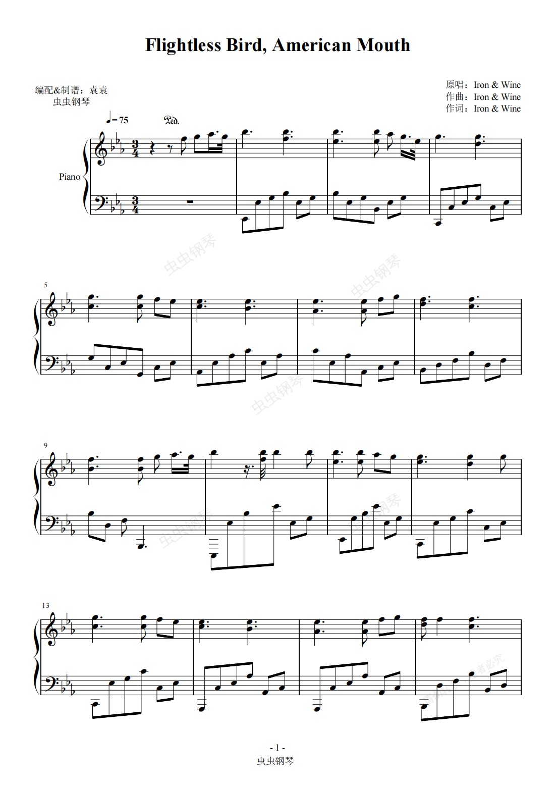 钢琴谱:暮光之城插曲 Flightless Bird, American Mouth 原调 简易演奏版