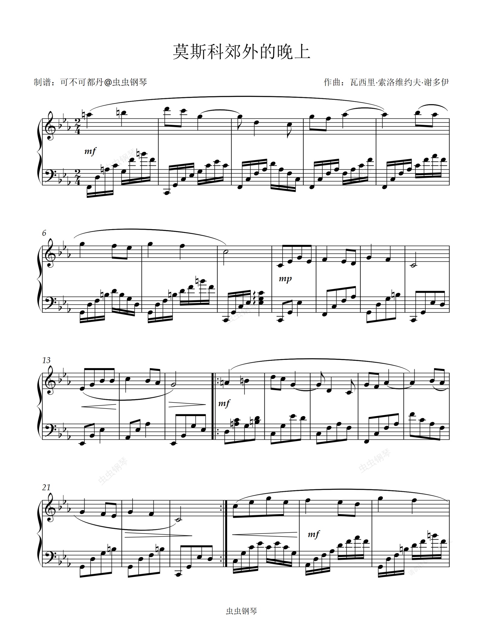 钢琴谱:高度还原版-莫斯科郊外的晚上