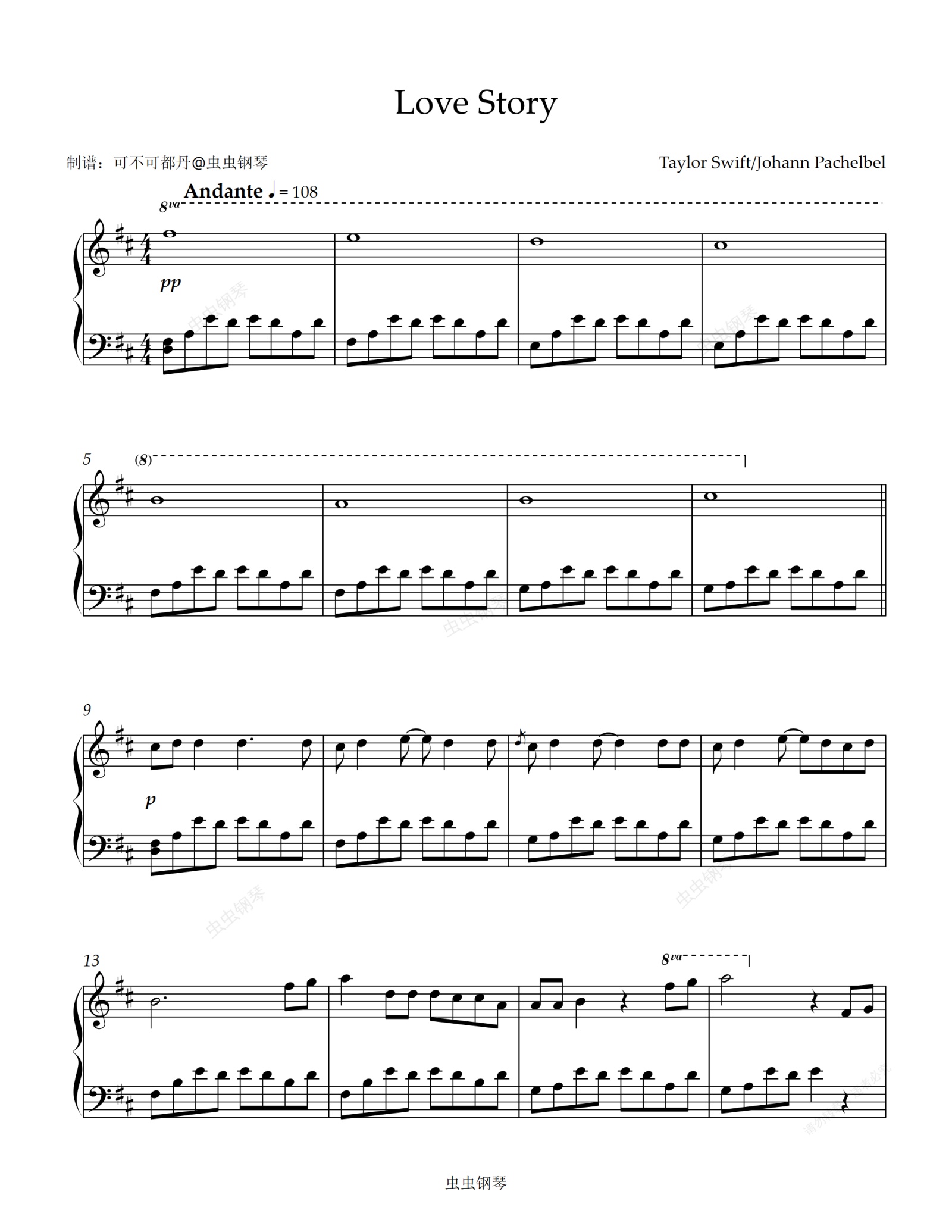 钢琴谱:温柔版Taylor Swift《Love story》+卡农