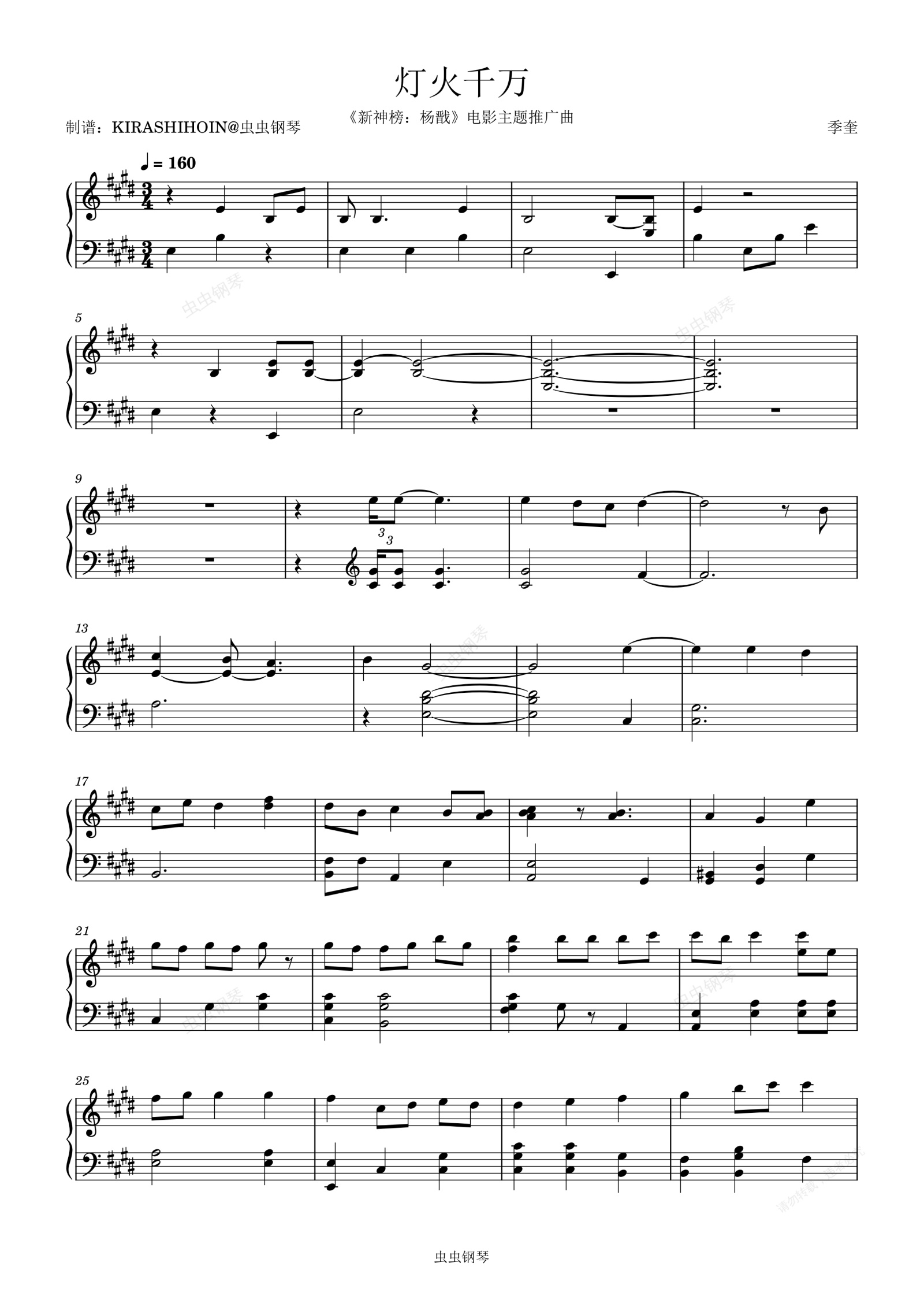 钢琴谱:灯火千万(《新神榜:杨戬》电影主题推广曲)- 檀健次