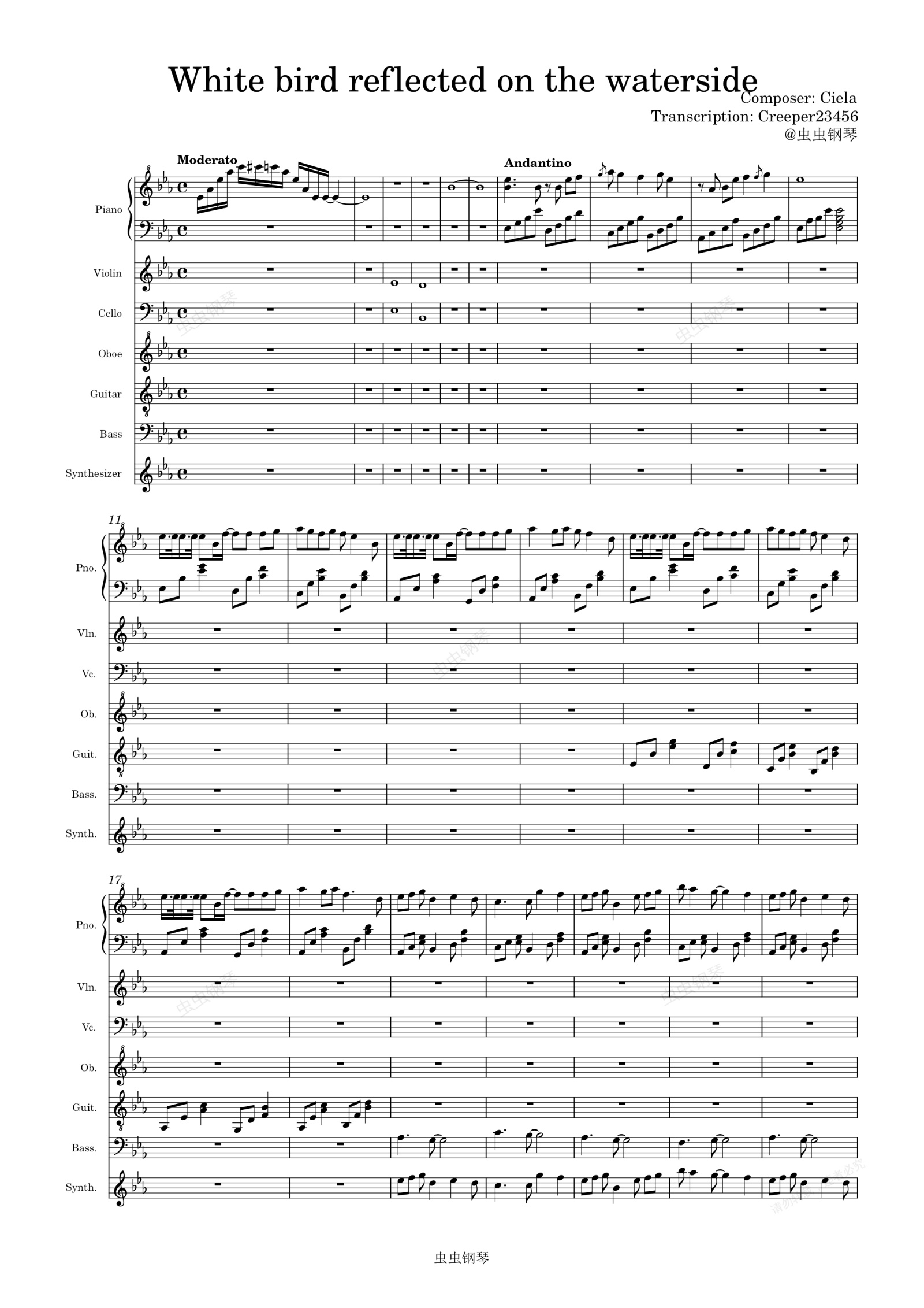 钢琴谱:水中倒映的白鸟 总谱
