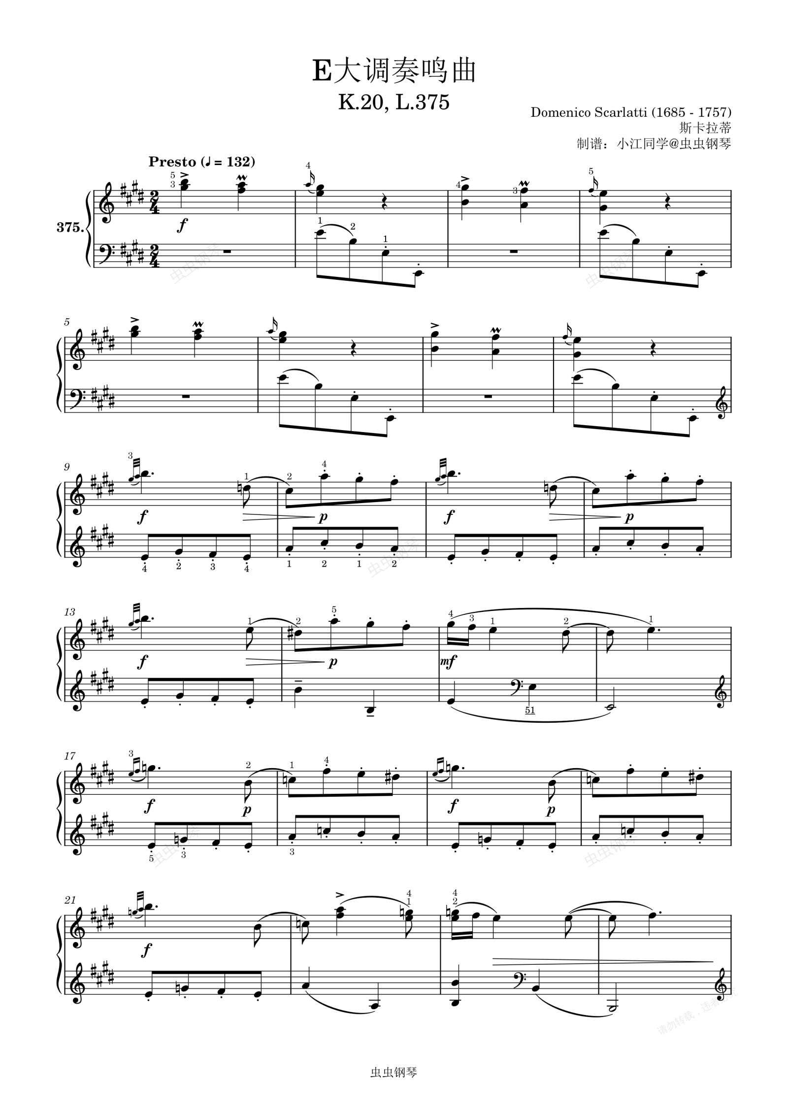 钢琴谱:E大调奏鸣曲 K.20, L.375