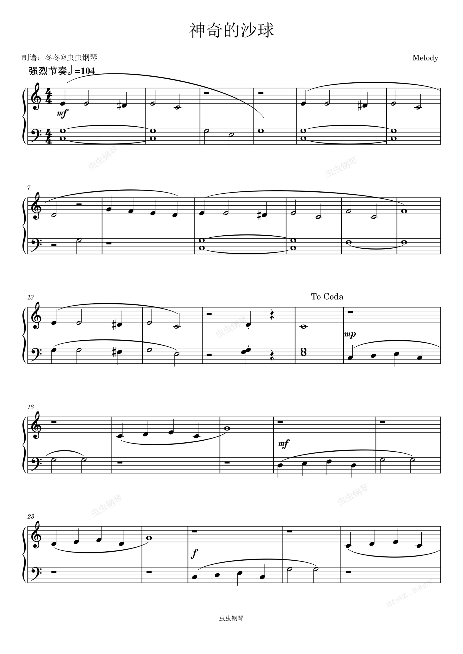 钢琴谱:神奇的沙球