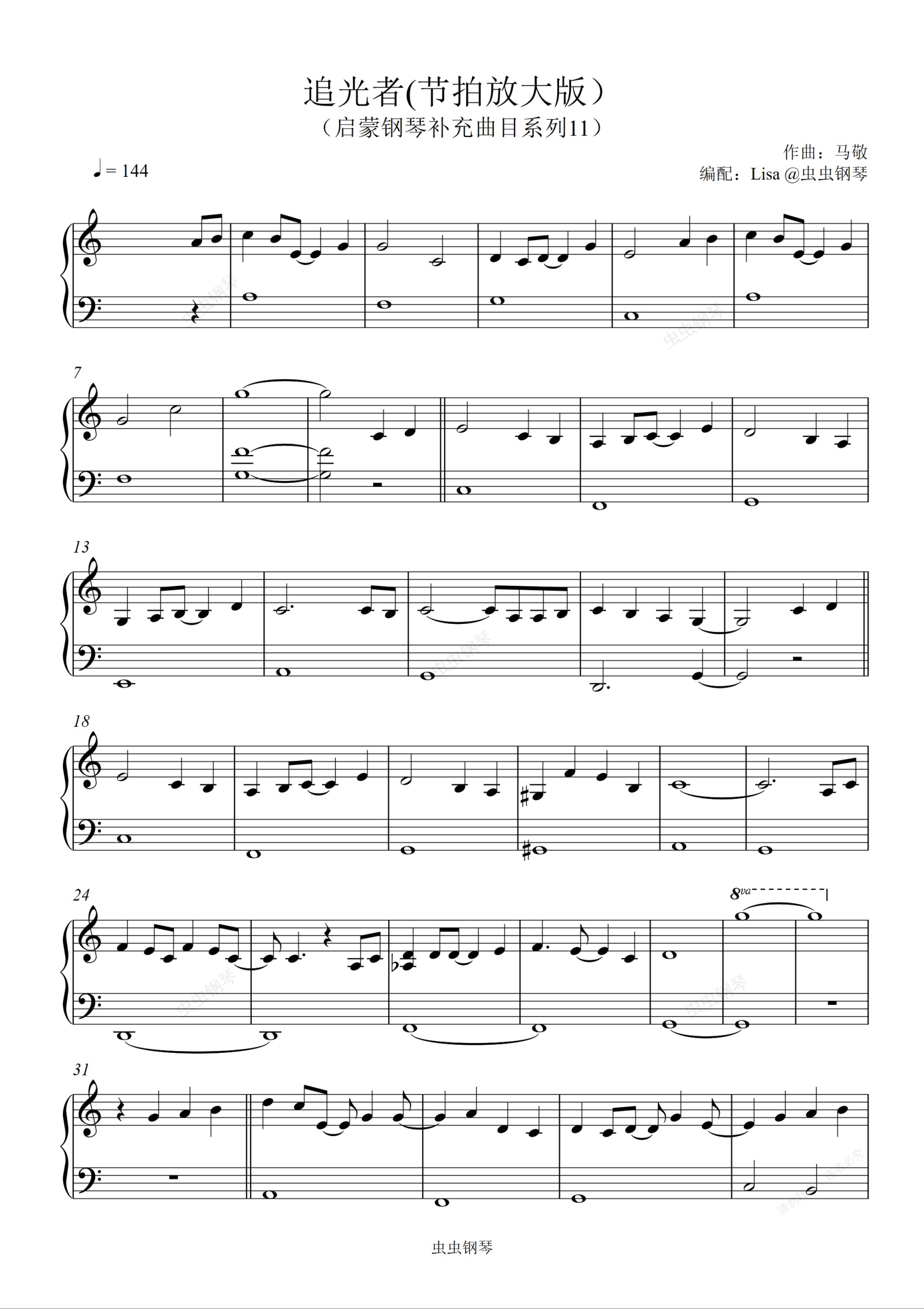 钢琴谱:追光者(小汤2水平,启蒙钢琴补充曲目)