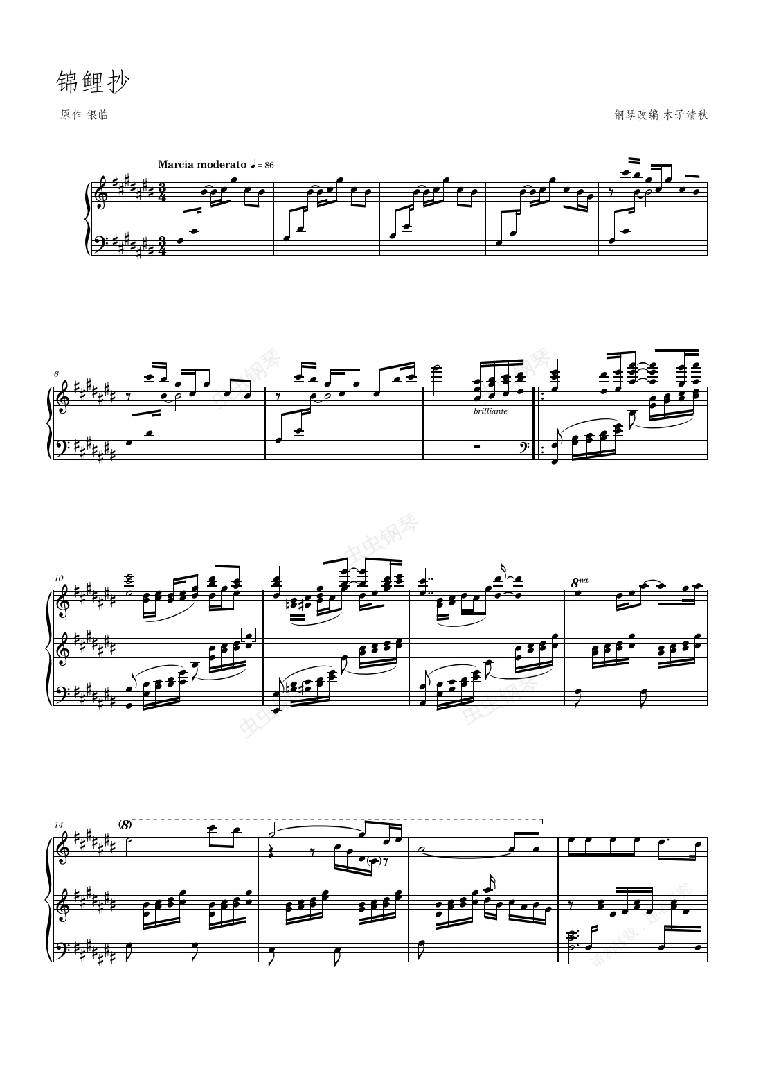 钢琴谱:《锦鲤抄》高难度钢琴改编