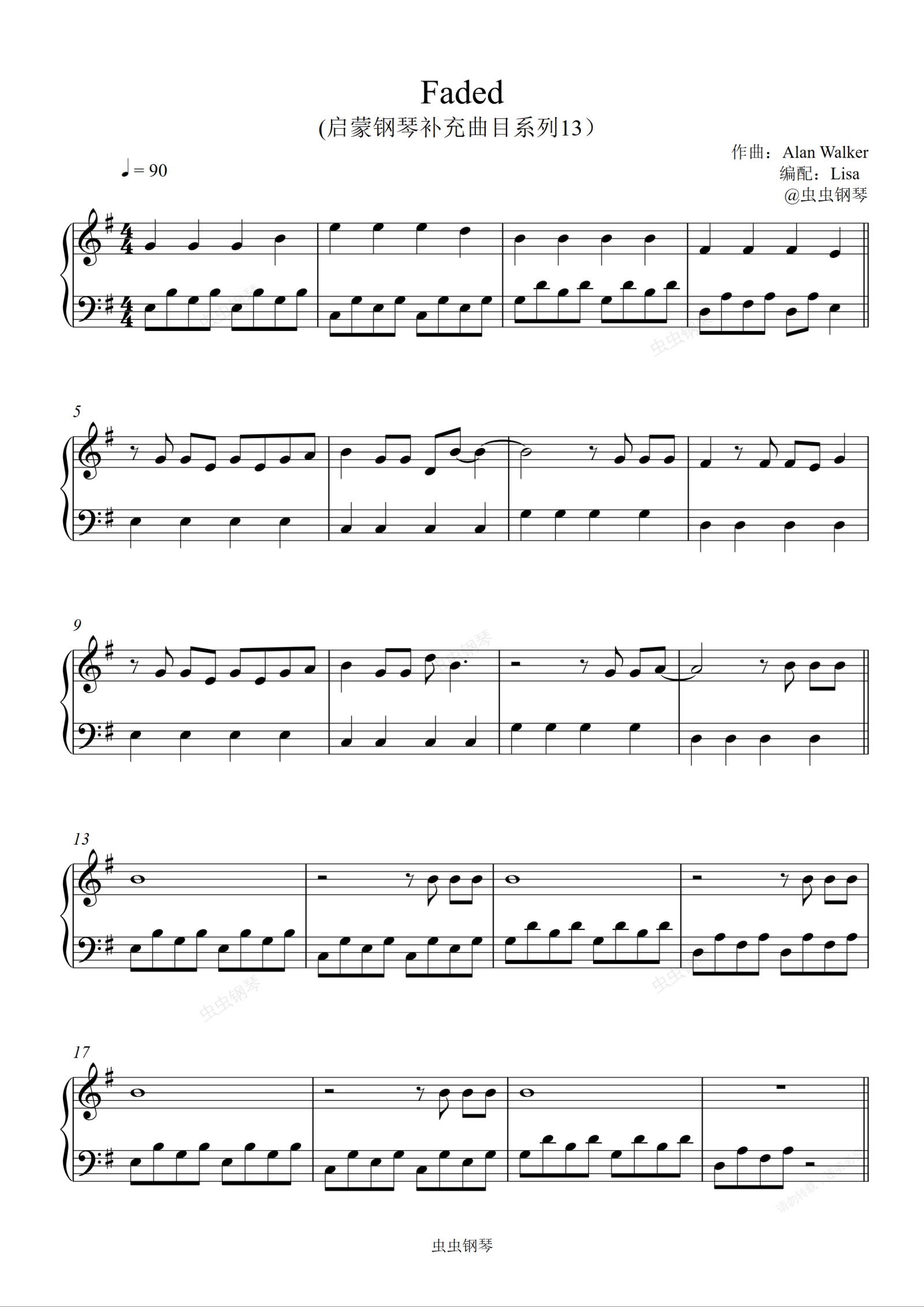 钢琴谱:Faded(小汤3水平,启蒙钢琴补充曲目)