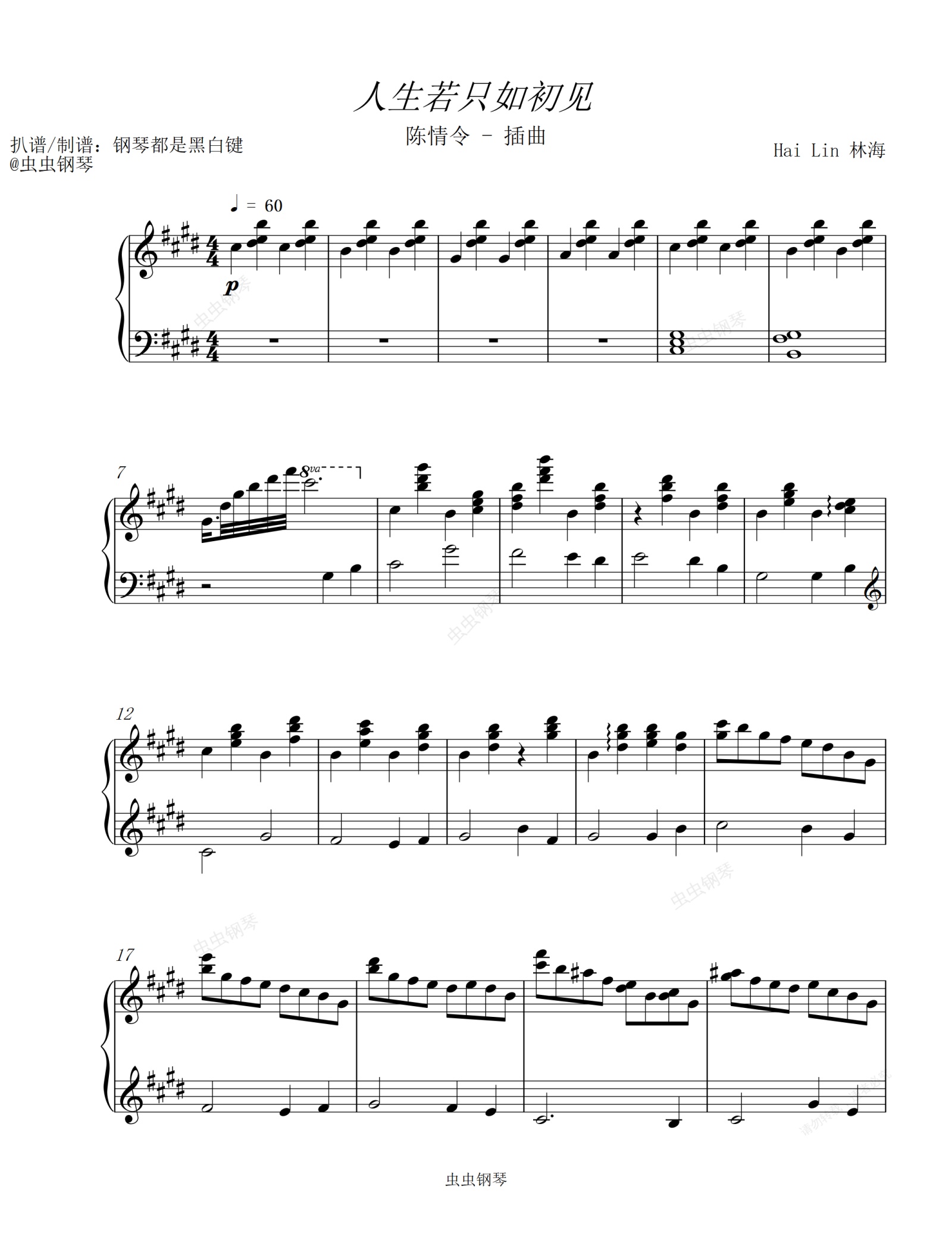 钢琴谱:【陈情令原声音乐】林海《人生若只如初见》