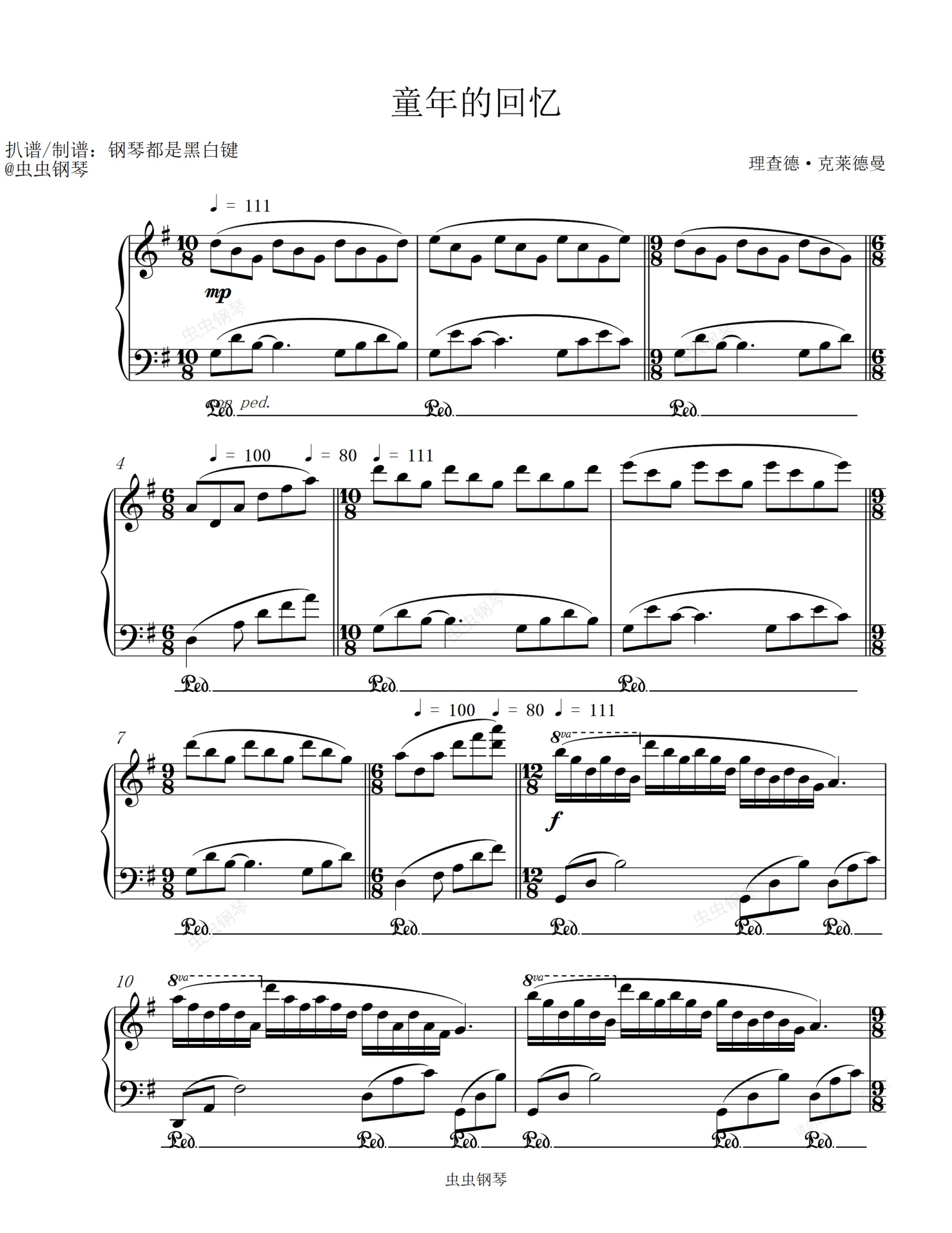 钢琴谱:童年的回忆/Childhood Memories - 理查德·克莱德曼 【宝藏级纯音乐】