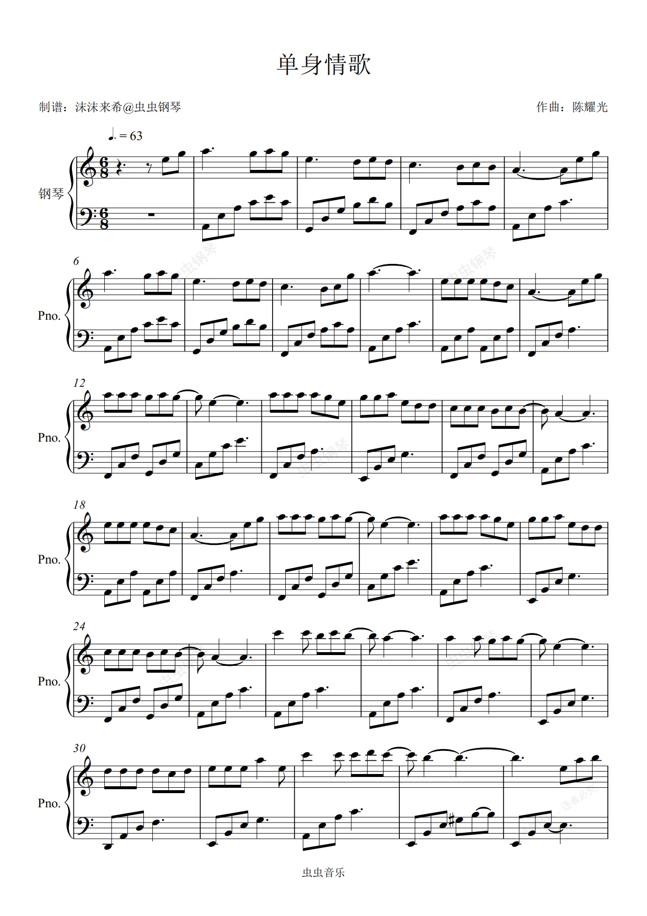 钢琴谱:《单身情歌》林志炫 好听易弹 来试试吧!